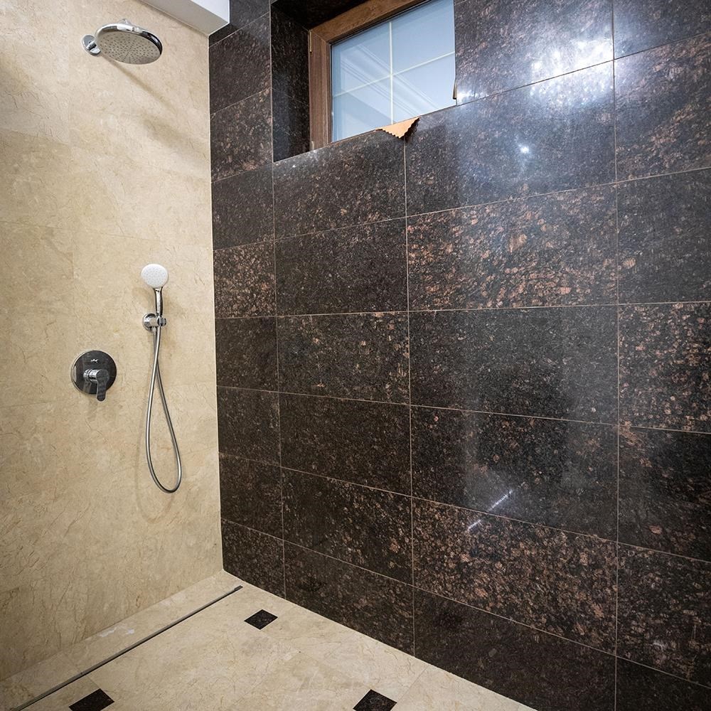 In varianta cu finisaj polisat granitul Tan Brown polisat, aduce o cromatica pigmentata tipica granitului ce confera spatiului o mare disponibilitate de asociere cu diferite culori din gama gri-rosu.