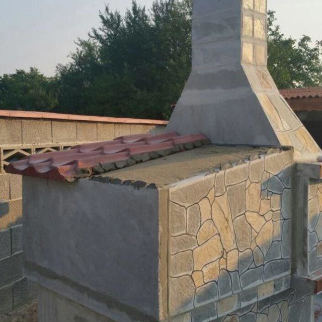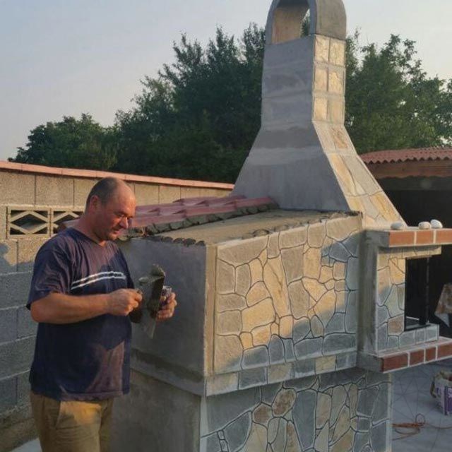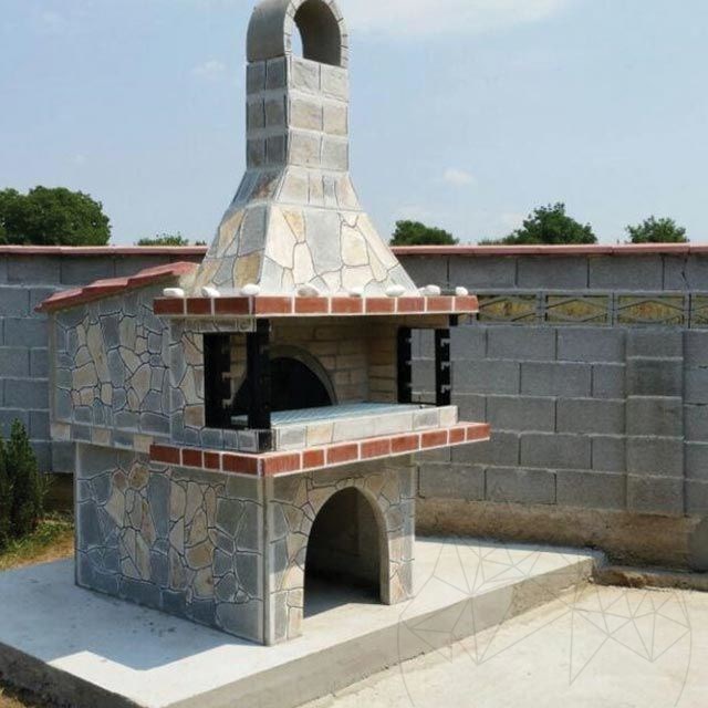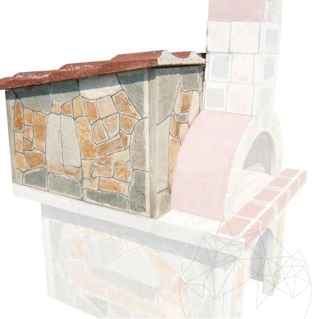 Panoul din spate si cele 2 panouri laterale sunt placate cu piatra naturala in acelasi stil ca si cuptorul.
