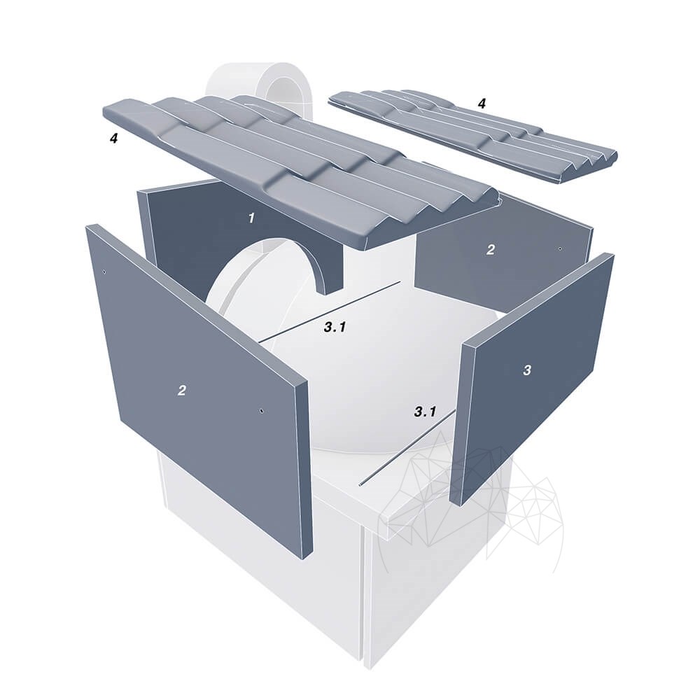 Acoperisul este format din panouri separate de beton armat, care sunt asamblate in jurul cuptorului.