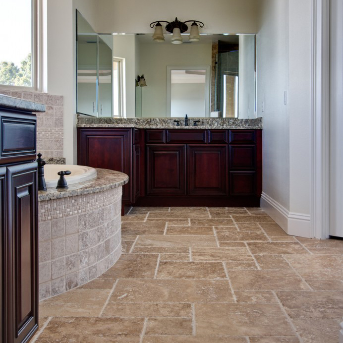 In tendintele de amenajari interioare ale bailor mici, ideea de monoculoare suprapusa pe mono-textura este menita sa te inconjoare intr-o atmosfera linistita. Echilibrul domina in amenajarea cu aceste placi mici (10 x 10 x 1 cm), montate pe pardoseala si pe perete. Travertinul antichizat absoarbe lumina si face interiorul mai armonios.