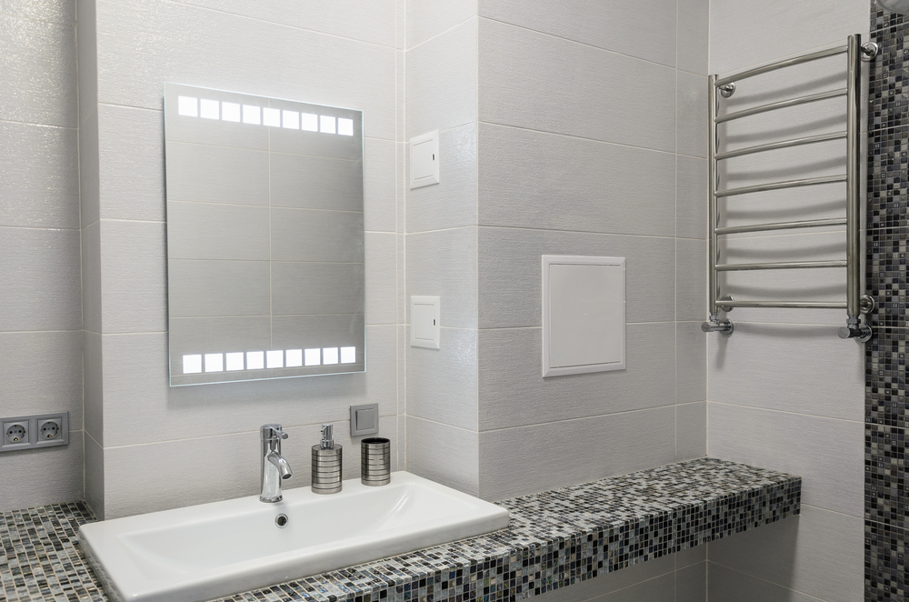 Instaleaza o cabina de dus cu pereti din sticla si functii de hidromasaj, oglinzi cu iluminare LED, dispensere pentru sapun si baterii cromate, cu senzor, si vei amenaja o baie cu dus moderna, cu elemente de stil hi-tech.