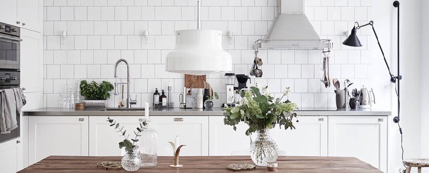 Bucatariile albe sunt in trend, iar aceasta nuanta absoluta se poate combina cu orice alta culoare. Poti alege sa mergi pe o simbioza intre alb si negru care nu se va demoda niciodata sau alb in combinatie cu griuri colorate sau doar o bucatarie alba complet la care sa adaugi cateva accente cromate/metalice.