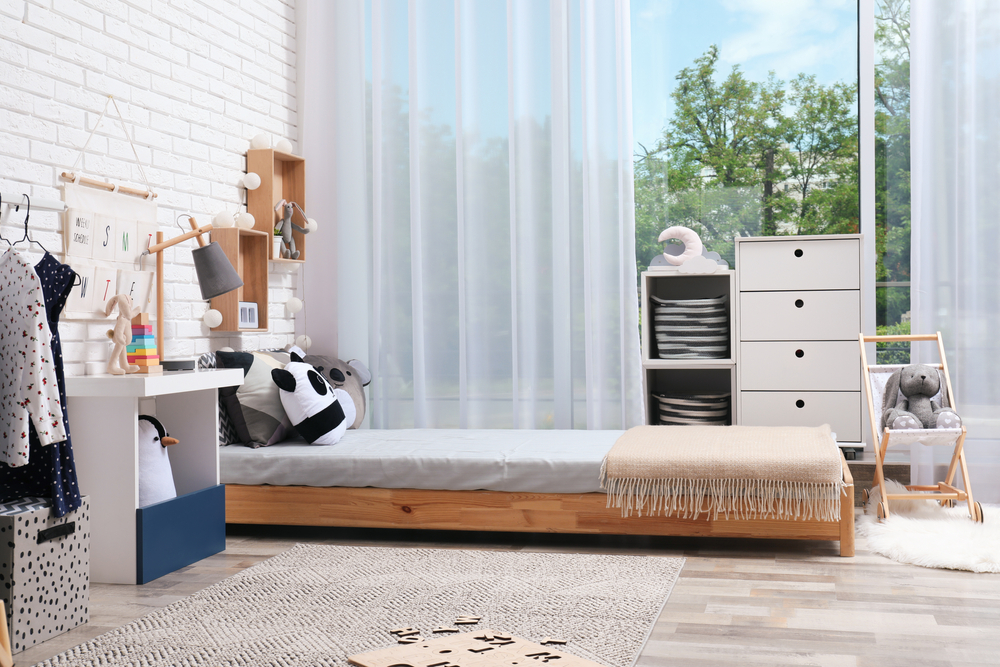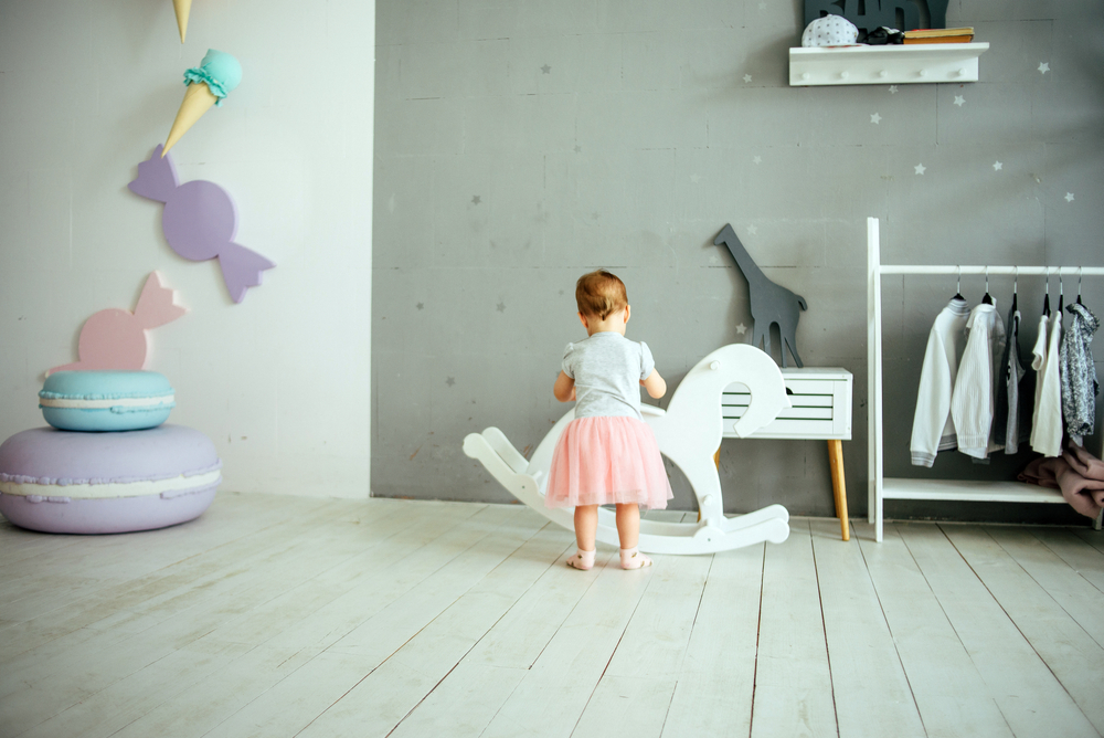 In locul unui patut traditional, poti opta pentru unul cu cadru inalt care il transforma intr-o casuta pentru copii. In timpul zilei, acesta va fi loc de joaca, iar noaptea, copilul se va simti confortabil si protejat in casuta sa speciala. Decoreaza acoperisul cu ghirlande luminoase sau carusele cu jucarii, pentru o atmosfera fermecatoare.