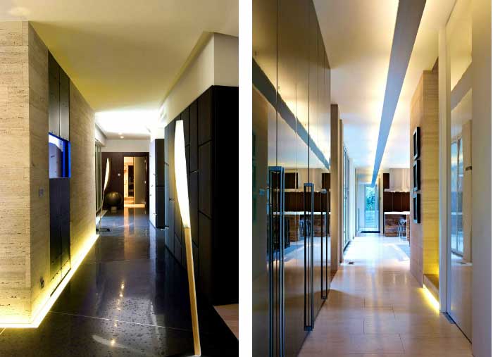 Apoi, foloseste cu atentie spoturile de lumina. Piatra naturala impresioneaza cand este bine luminata. Exista produse din piatra naturala care au nevoie de baie de lumina, dar multe uimesc cand sunt discret si de aproape luminate, datorita insertiilor sale diferite de la o piatra la alta. Amenajarea unui hol este exact locul in care lumina se va intelege cel mai bine cu piatra.