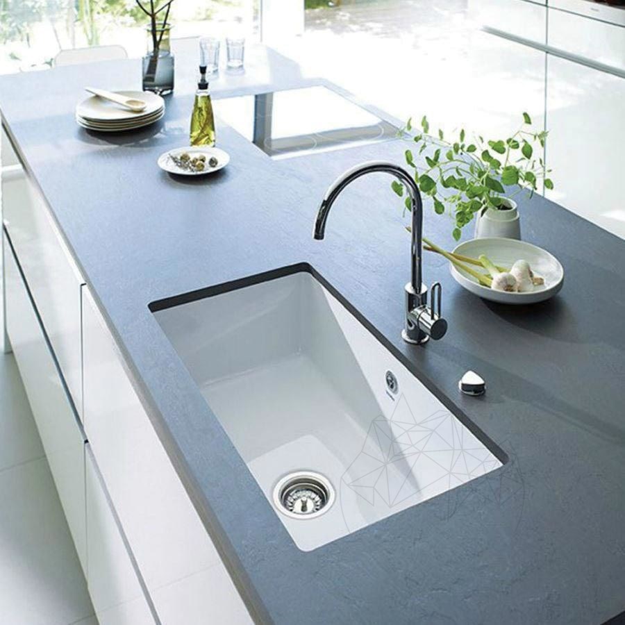 Privite dintr-o anume perspectiva, baile si bucatariile par a fi spatii liniare, in care inovatia si originalitatea si-au pierdut de mult semnificatia. De aceea, materialele cu un puternic impact la nivel vizual si tactil isi pun amprenta asupra proiectelor noastre de amenajari. Ardezia Nero periata induce senzatie de relaxare atat de apreciata in bai si bucatarii. Disponibile acum cu dimensiuni mai generoase (200 x 65 x 3 cm), noile blaturi din ardezie Nero periata au sansa sa fie puncte de atractie in spatiile pe care le decoreaza. In plus, datorita grosimii de 3 cm reprezinta o alegere eleganta si pentru proiectele exterioare (trepte, glafuri, podeste). Calitatile acestui material sunt rezistenta extraordinara asociata unei game de culori speciale, care-si vor pune amprenta remarcabila asupra spatiului. Pentru pastrarea aspectului initial, noi recomandam impermeabilizarea suprafetei cu solutii profesionale de la LTP, produse in UK.