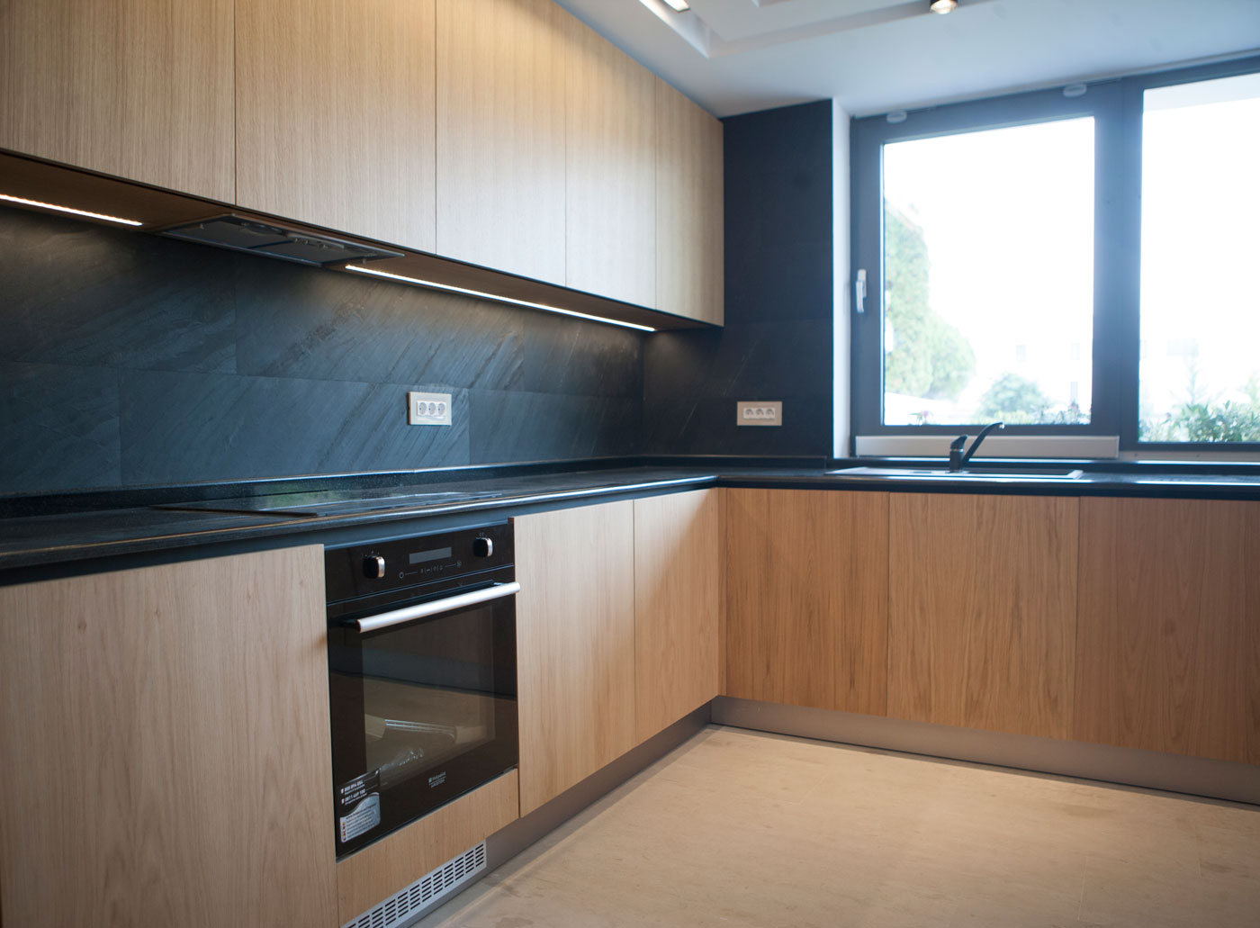 Electrocasnice „invizibile” încorporate în mobilier placat cu piatră.