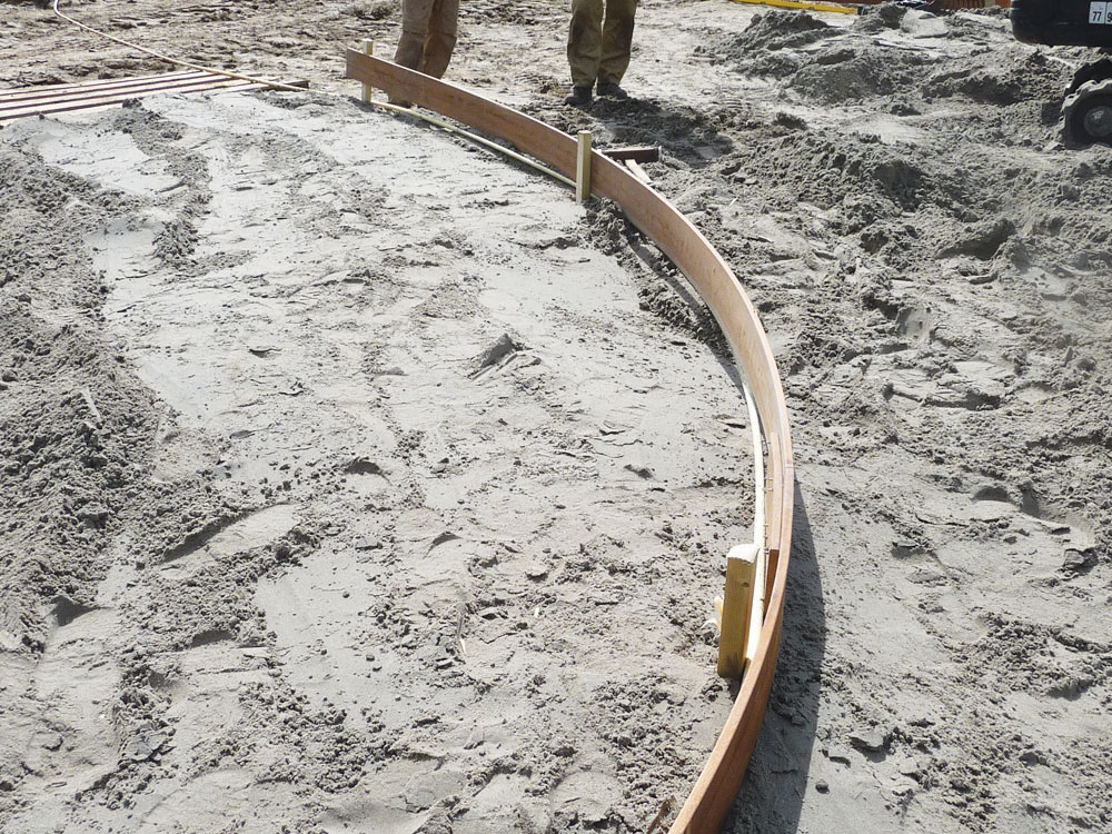 Delimitarea și profilarea zonei: Se începe cu shaping, adică trasarea conturului suprafeței ce urmează a fi pavate cu pietriș stabilizat. În această etapă se montează bordurile sau elementele de delimitare perimetrală (din aluminiu, oțel corten, oțel galvanizat, lemn sau plastic), cu o înălțime de 5–15 cm, în funcție de grosimea stratului constructiv și de încărcările așteptate. Bordurile fixează marginile suprafeței și vor preveni dispersarea pietrișului în afara perimetrului stabilit. Este important ca această delimitare să fie executată conform planului de amenajare, folosind, de exemplu, nivelment laser pentru a alinia cotele cu zonele învecinate (dacă aleea trebuie să se conecteze la o terasă, trotuar etc.).