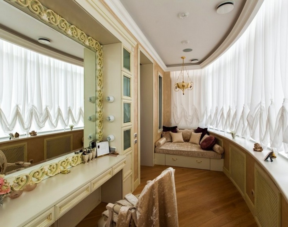 Am spus anterior ca poti amenaja dressing-ul pe balcon in situatia in care acesta se afla in prelungirea dormitorului. Opteaza pentru materiale de calitate in ceea ce priveste mobilierul si monteaza dulapurile pe peretii catre apartament. Poti opta pentru draperii si perdele pentru un plus de intimitate, daca iti doresti intimitate (vrei sa-ti schimbi garderoba pe balcon). Apeleaza la un puf ca sa te poti aseza cand te incalti, sau chiar un fotoliu pe care sa arunci neglijent o perna decorativa. Nu uita de un covor pufos in nuantele incaperii pentru a incalzi spatiul si de o oglinda freestanding daca nu-ti plac cele de mobilier si ai suficient spatiu.