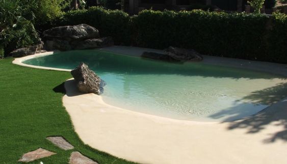 Uite cum poti integra piatra naturala cu piscina cu nisip, sursa foto: Pinterest