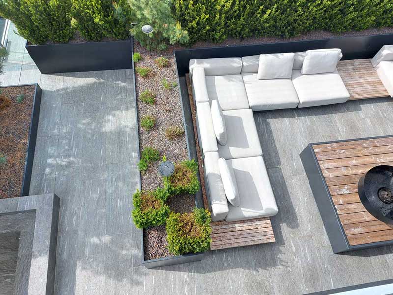 Aceste plăci sinterizate imită perfect textura și nuanțele pietrei naturale, oferind o estetică sofisticată, în armonie cu peisajul montan al regiunii. În același timp, ele sunt extrem de rezistente la uzură, intemperii și fluctuații de temperatură – o alegere ideală pentru orice proiect exterior premium.