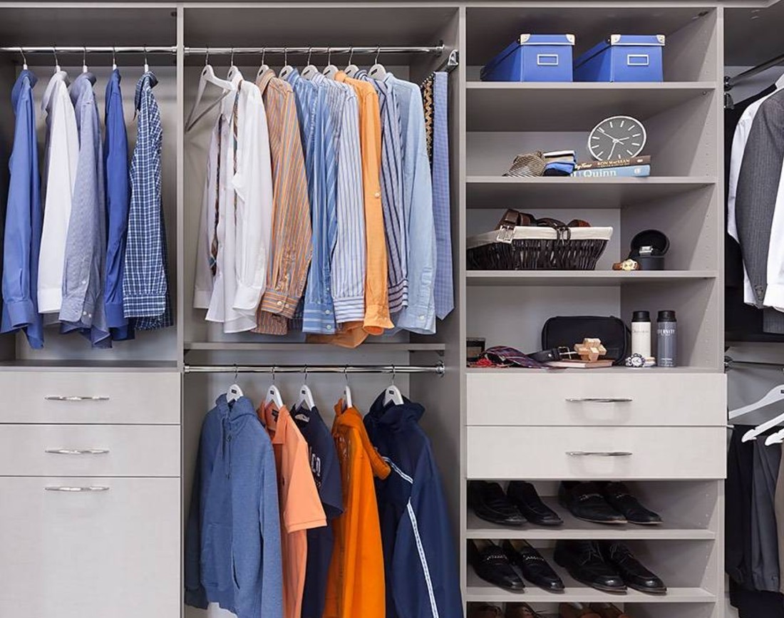 Poti pozitiona camasile in partea de sus a compartimentarii dressing-ului, sau le poti alterna, sursa foto: Pexels