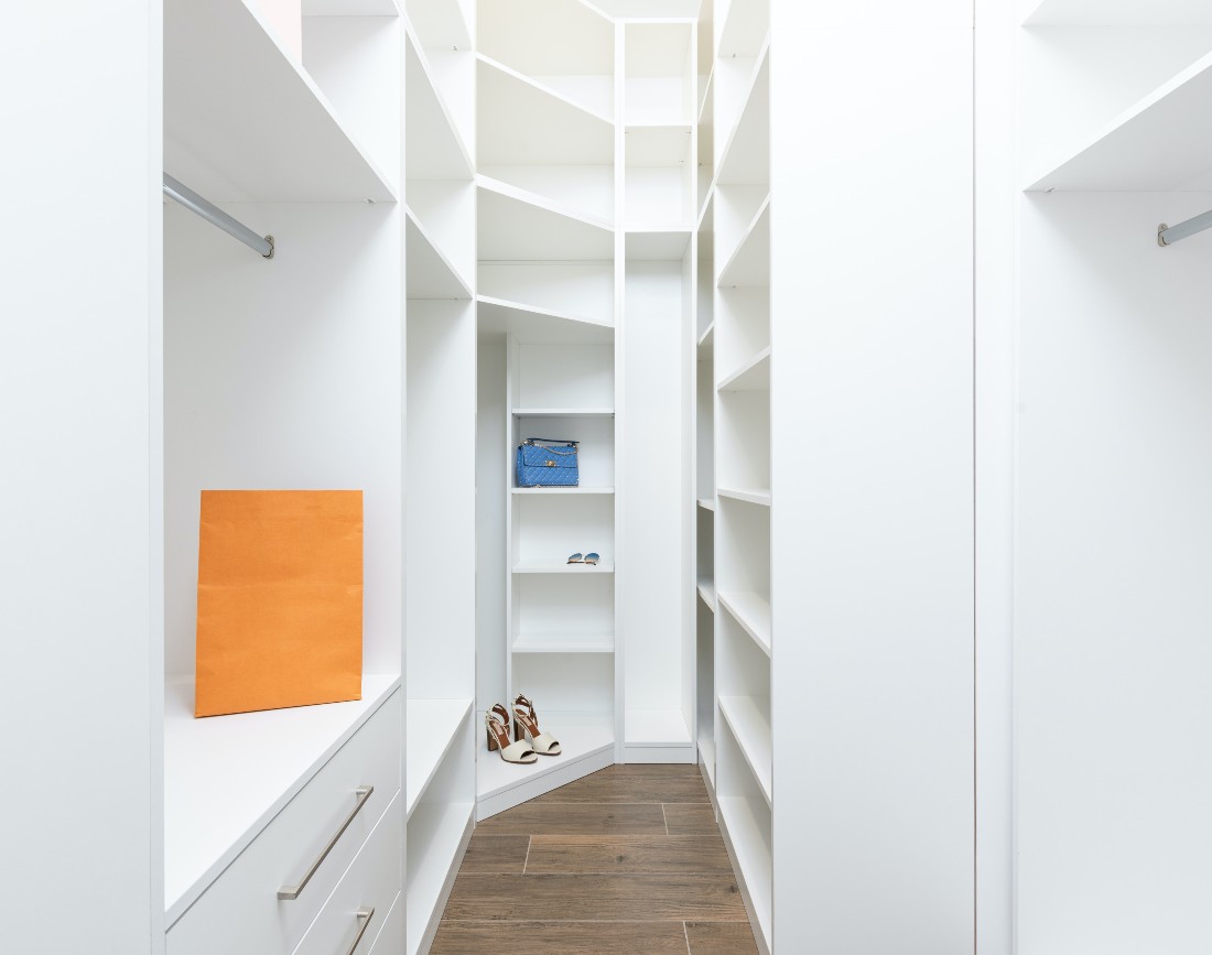 In compartimentarea dressing-ului, este important sa te asiguri ca pentru haine folosesti rafturile orizontale pentru a maximiza pe cat posibil spatiul, iar pentru incaltaminte, in compartimentarea dressing-ului poti folosi rafturi inclinta.
