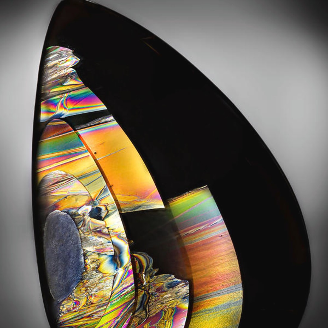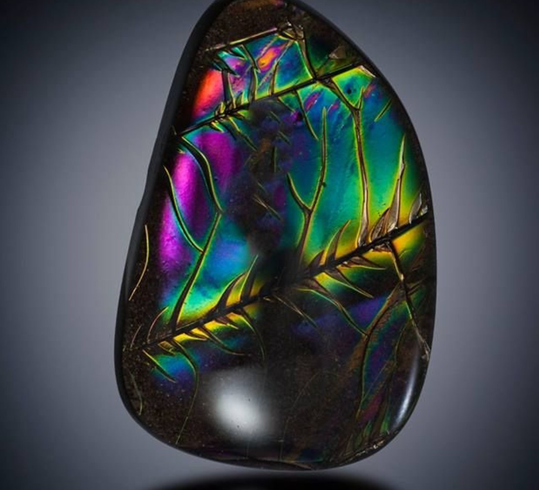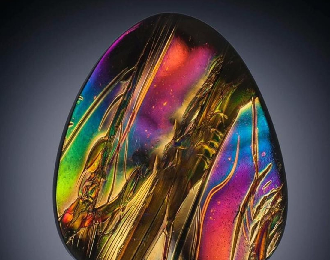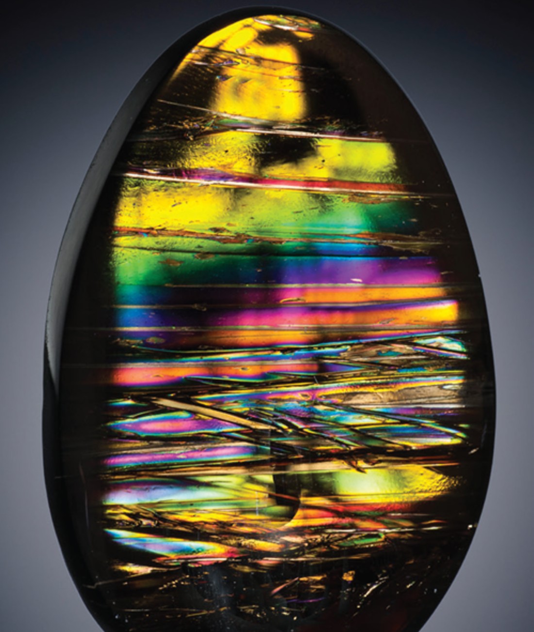 Pare ca un curcubeu a fost prins in interiorul obsidianului, sursa foto: gem-a
