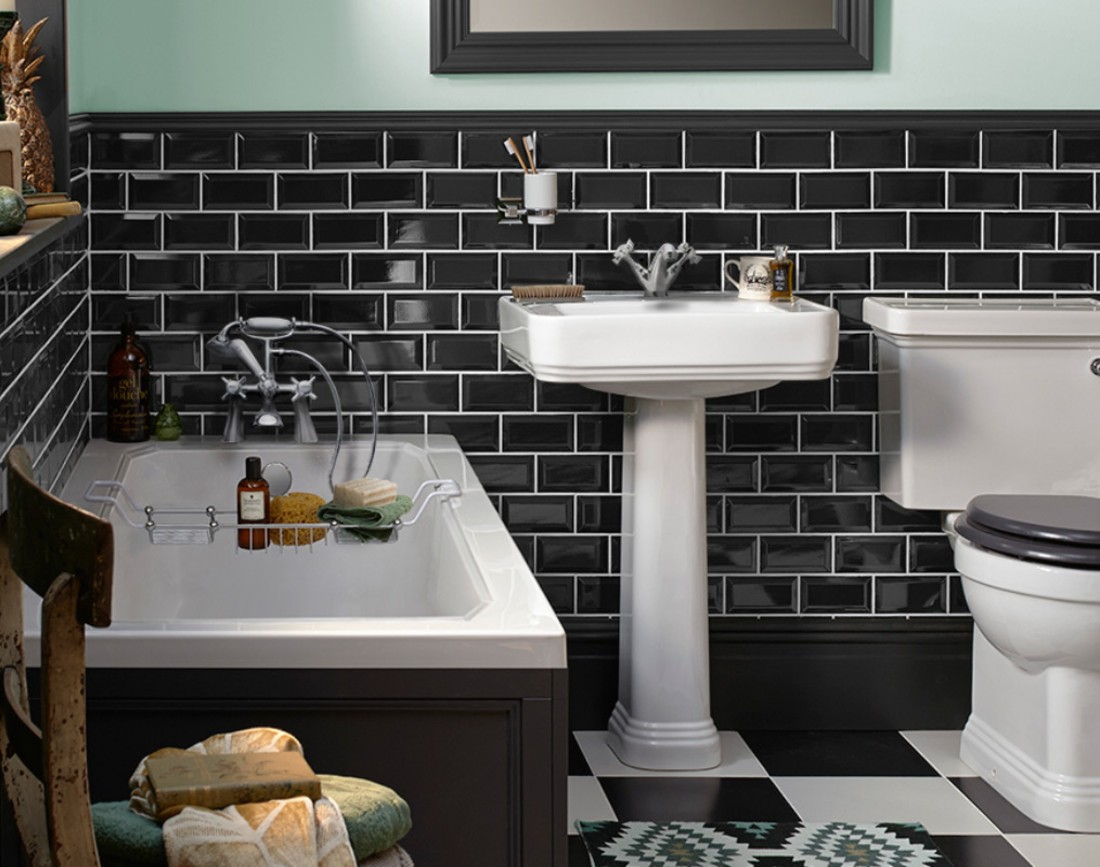 Idei de amenajare a baii in stil art deco in nuante inchise, sursa foto: bathroomsupastore