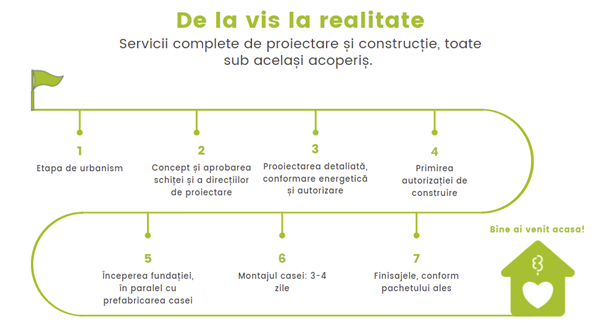 Dupa semnare intram in procesul de contructie care urmareste un timeline, fiecare milestone este comunicat catre client. (vezi imaginea de mai jos)