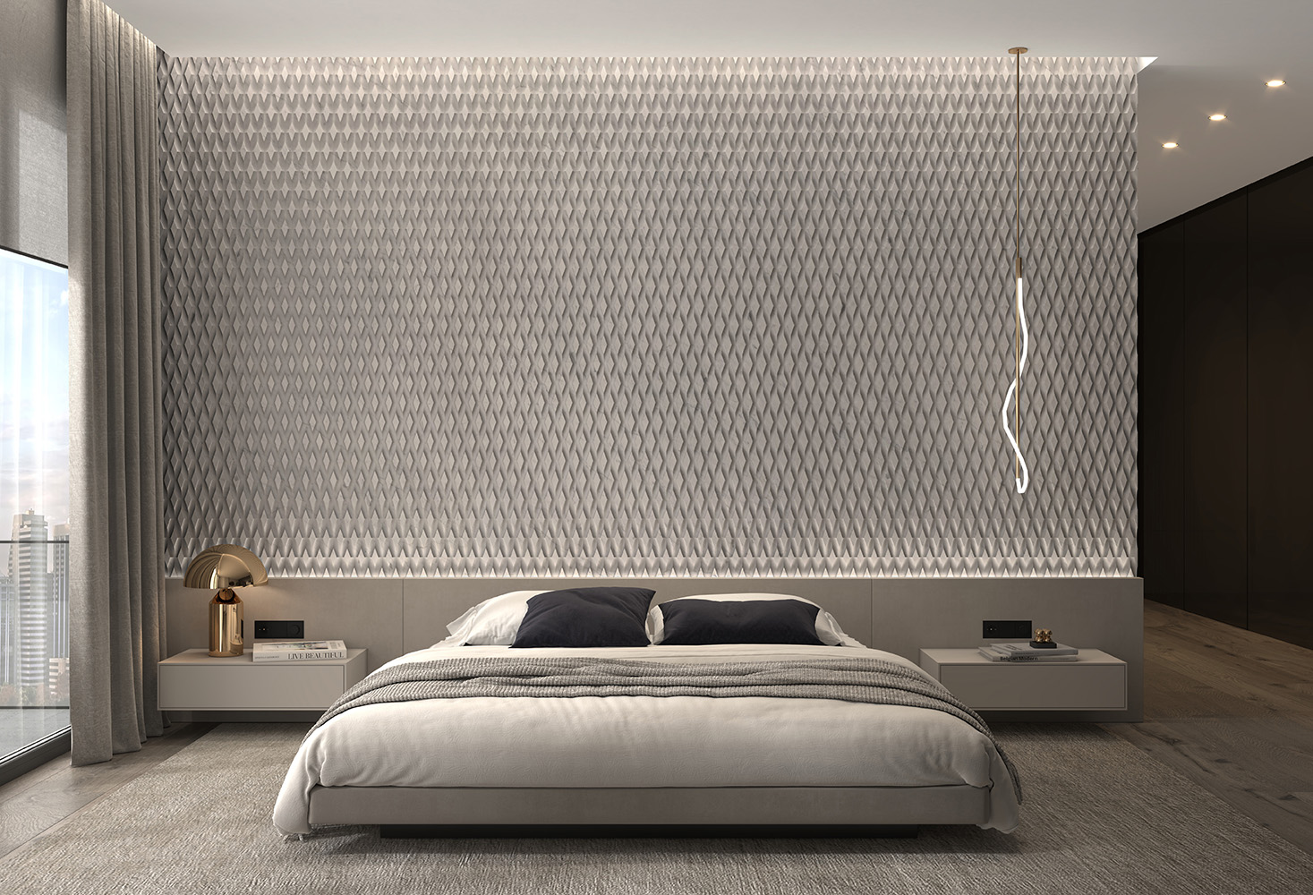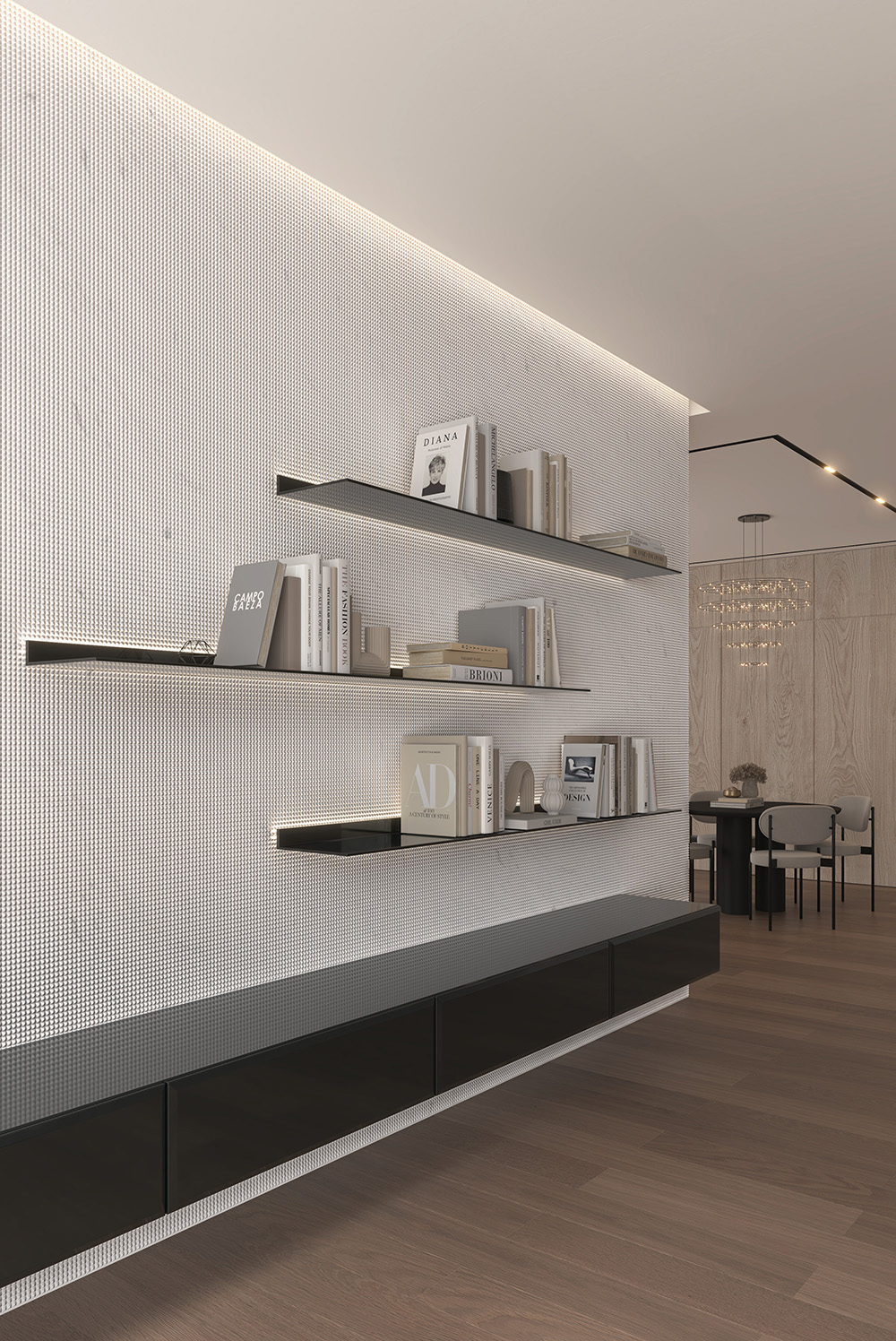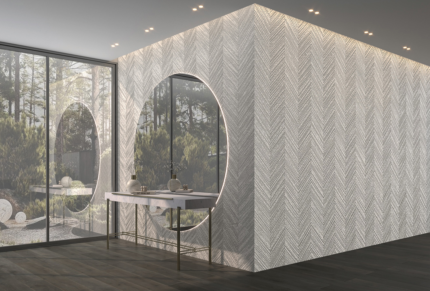 Rezultatul? O suprafață vie, care își schimbă expresia în funcție de unghiul și intensitatea luminii – un material care nu mai este un simplu fundal, ci un actor principal în arhitectura interioară.