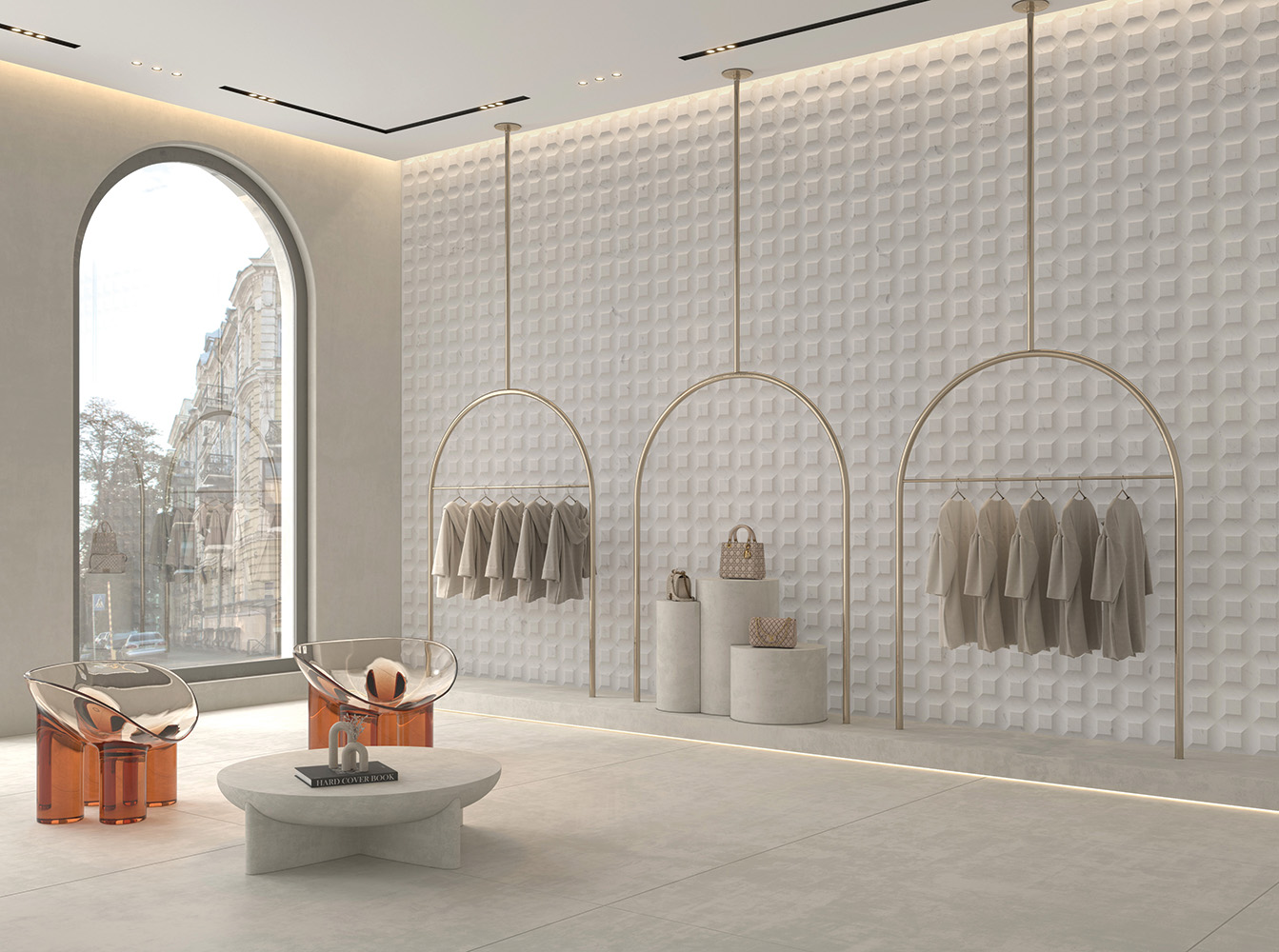 Perimetre de impact: În retail, prima impresie vinde. Finisajele FLOW, cu texturile lor 3D și reflexiile subtile, generează suprafețe care atrag privirea și conduc vizual clientul prin spațiu. Sunt ideale pentru buticuri de modă, showroom-uri de bijuterii și spații de retail premium, unde fiecare colț trebuie să vorbească despre calitate și unicitate.