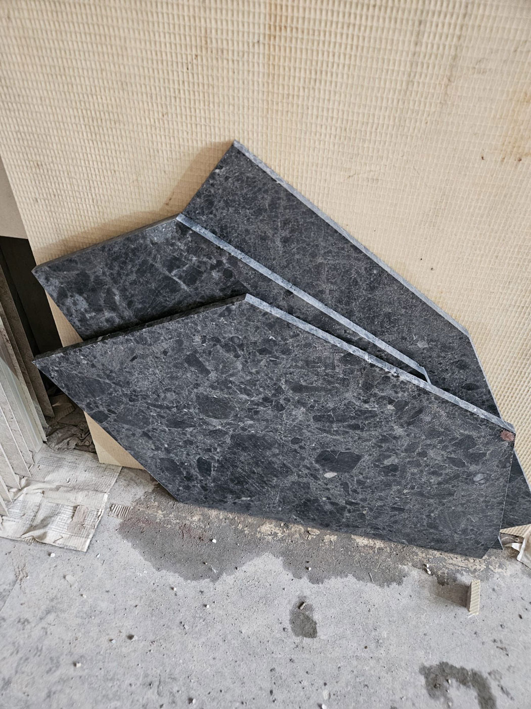 Montajul final aduce la viață pattern-ul Opus Geometric, transformând un simplu slab de piatră într-o suprafață arhitecturală impresionantă.