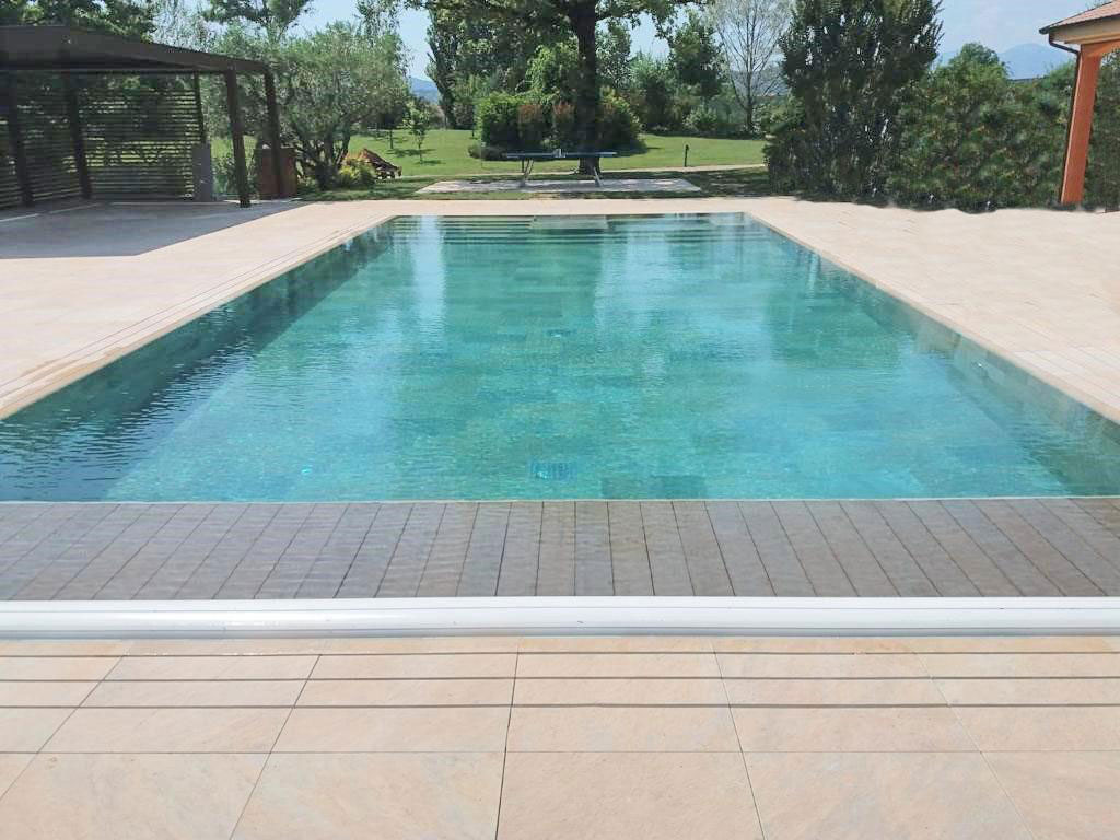 În zona piscinei, unde riscul de alunecare este ridicat, L'Altra Pietra oferă un coeficient de aderență de nivel profesional, chiar și în condiții de umiditate maximă.