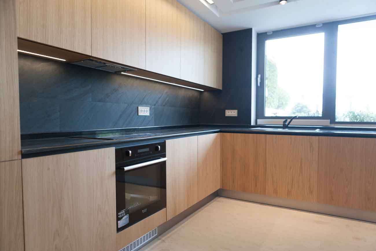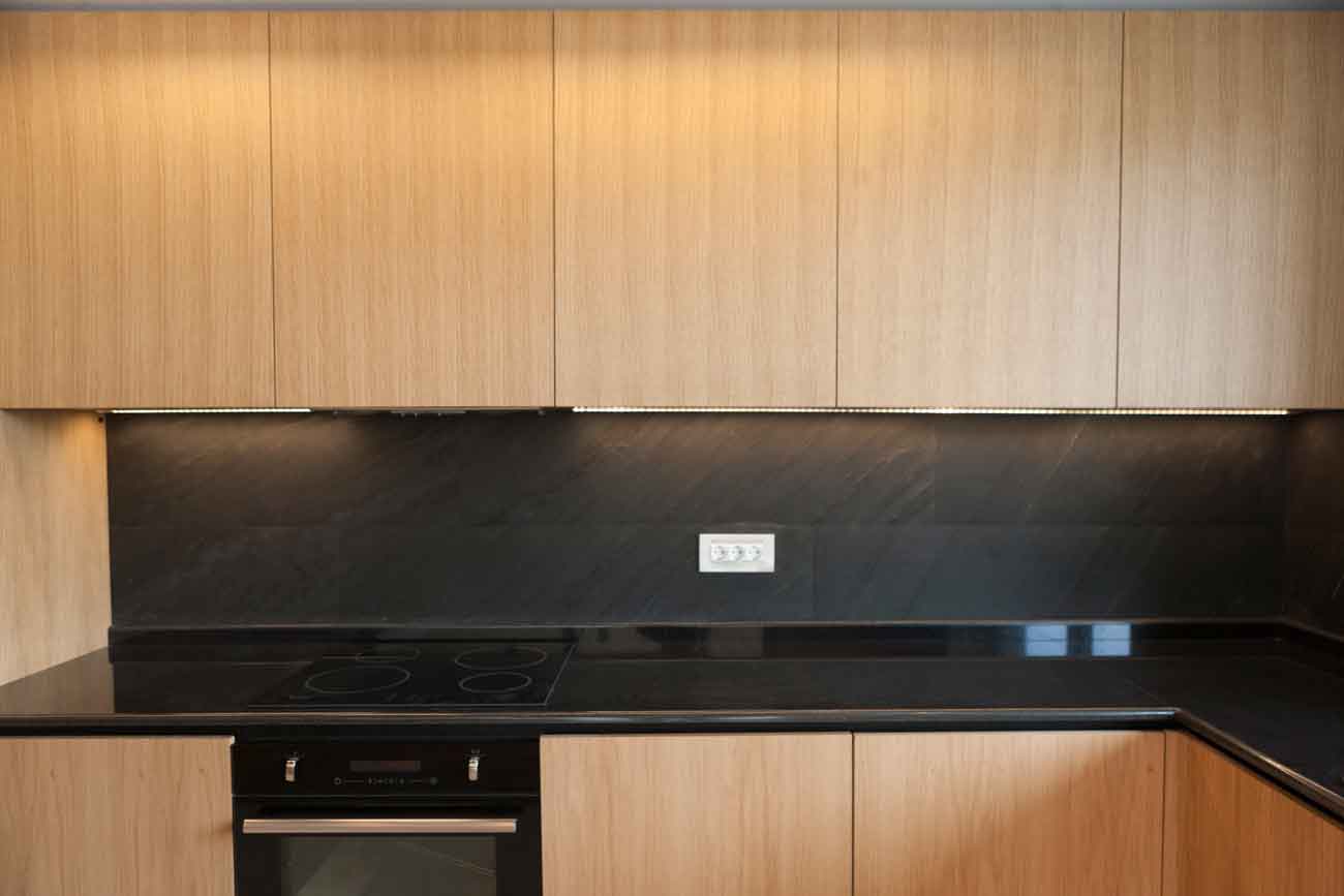 Disponibilă în dimensiuni generoase, până la 280 x 125 cm, ardezia SKIN permite crearea de backsplash-uri fără îmbinări vizibile și fronturi de bucătărie cu un aspect unitar și sofisticat.