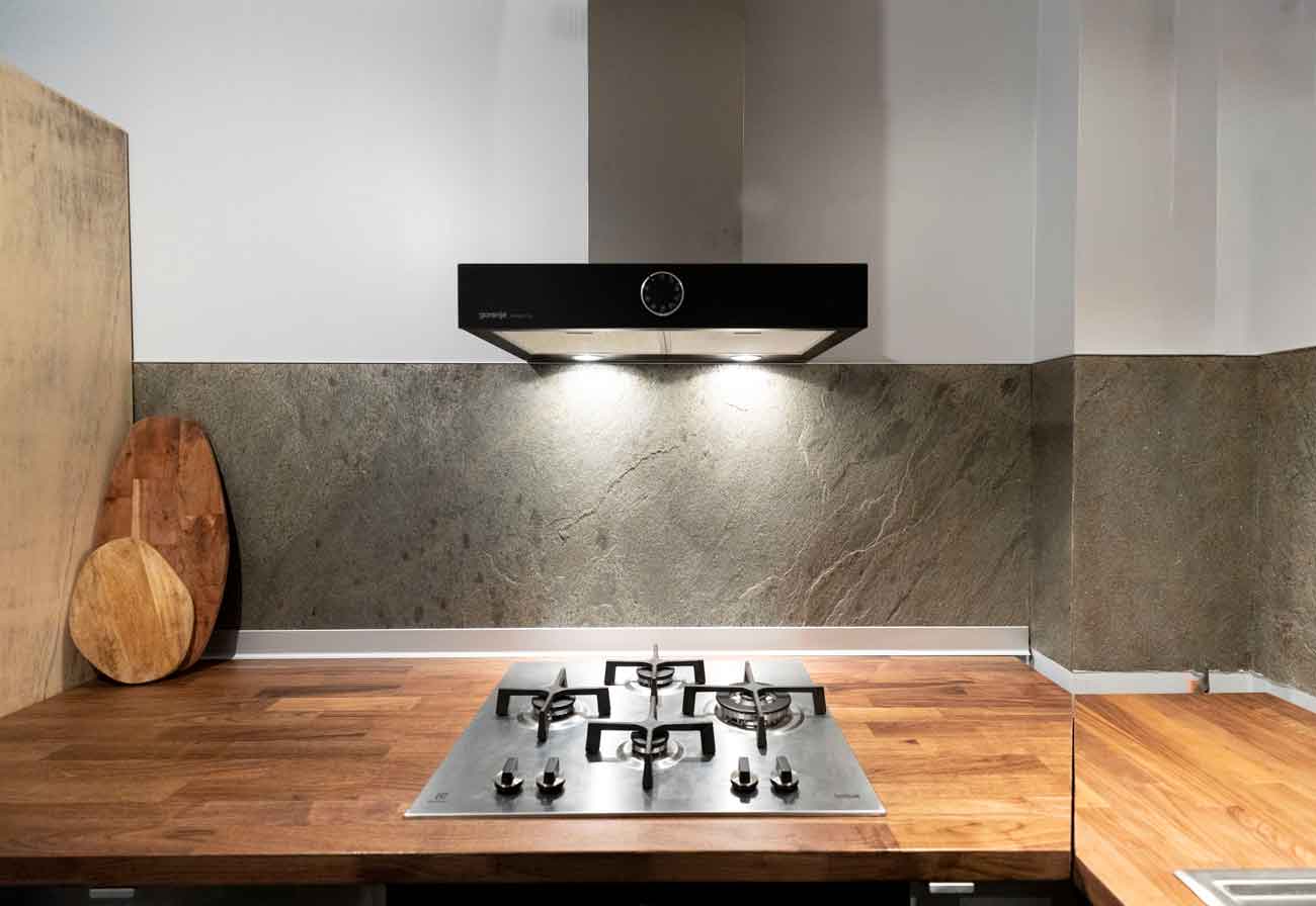 Datorită unui strat suplimentar de protecție, ardezia flexibilă SKIN este rezistentă la umezeală, căldură și uzura zilnică din bucătărie.