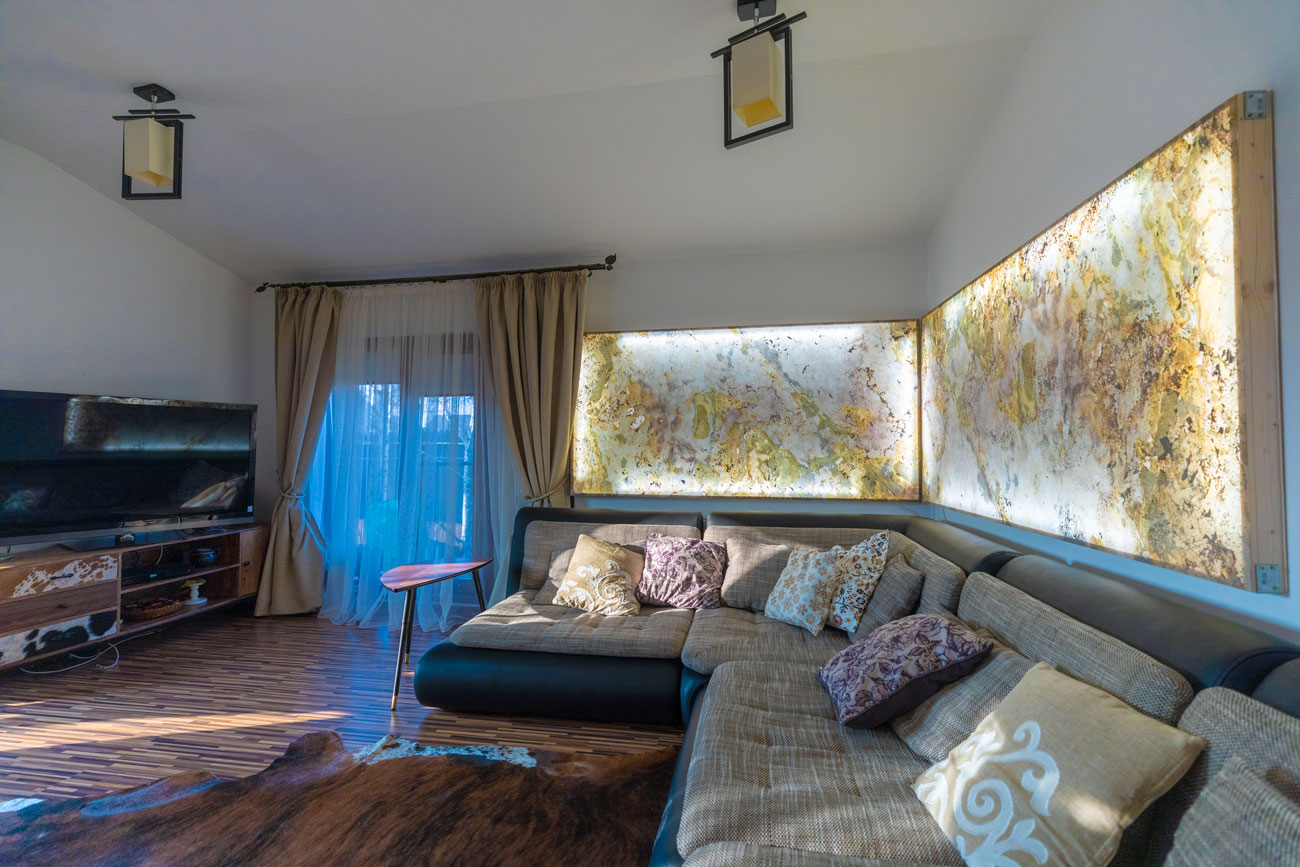 1. Perete accent cu ardezie SKIN translucida + iluminare de spate
