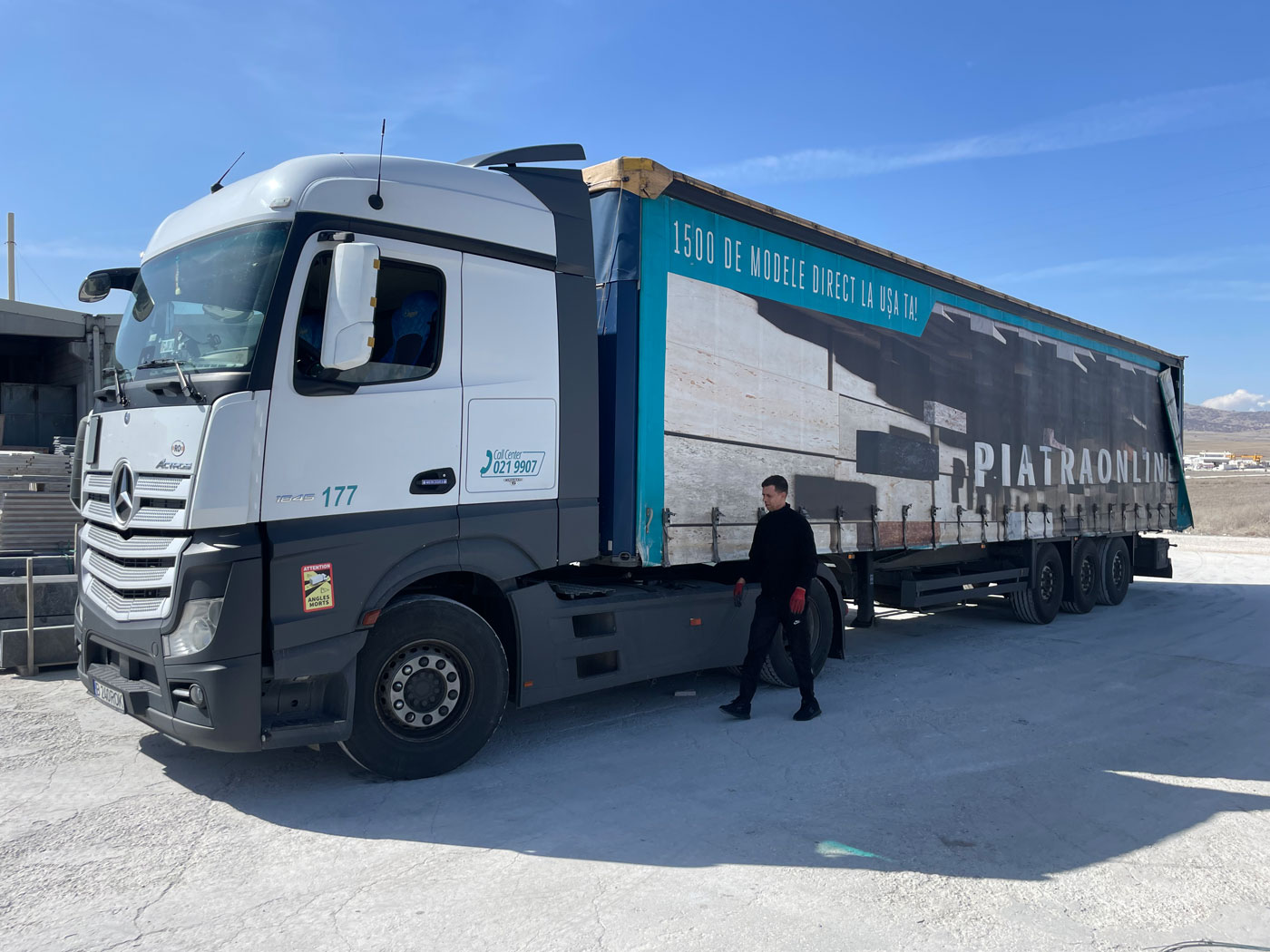 Imaginile surprind momente din rutina zilnică a echipei PIATRAONLINE: livrări de piatra naturala pe drumurile din România și șantiere în plină desfășurare. Camioanele ce poartă mesajul „Drumul către relaxare e pavat cu piatră” călătoresc spre diverse destinații, aducând piatra naturală mai aproape de clienți. Acest mesaj subliniază angajamentul PIATRAONLINE de a transforma spațiile clienților, integrând elemente naturale care invită la relaxare și reconectare cu natura.