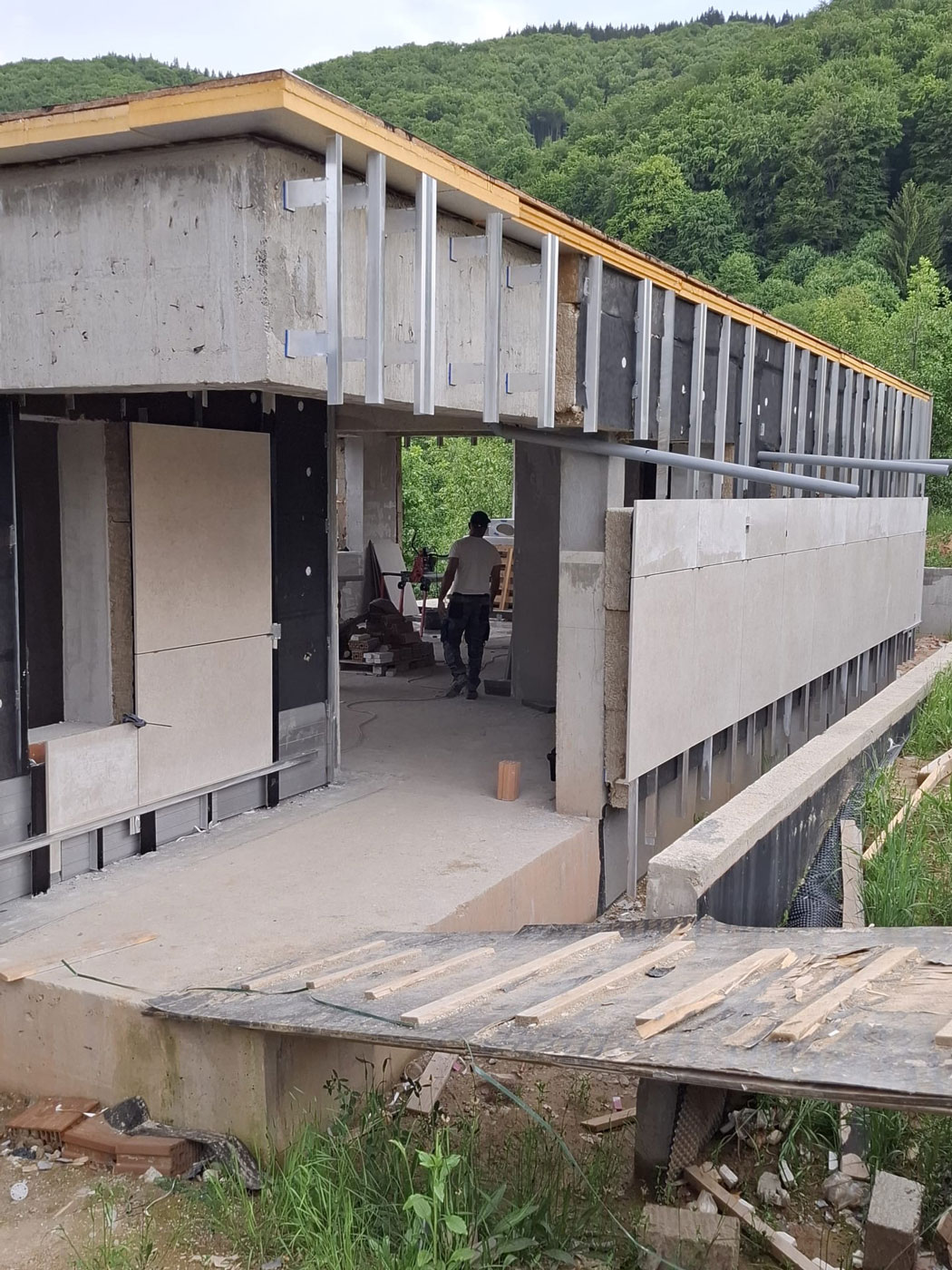 „Provocarea a fost să realizăm montajul exact pe sistemul ETEM, cu cadre și profile metalice, și să asigurăm că fiecare placă stă stabil, rosturile sunt uniforme și fixările nu compromit estetica.”
