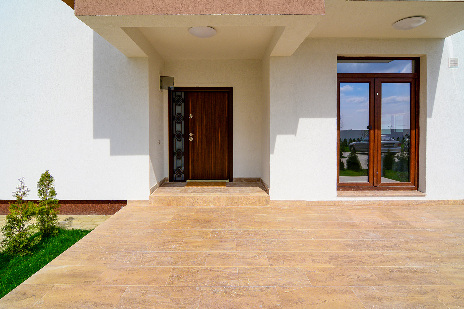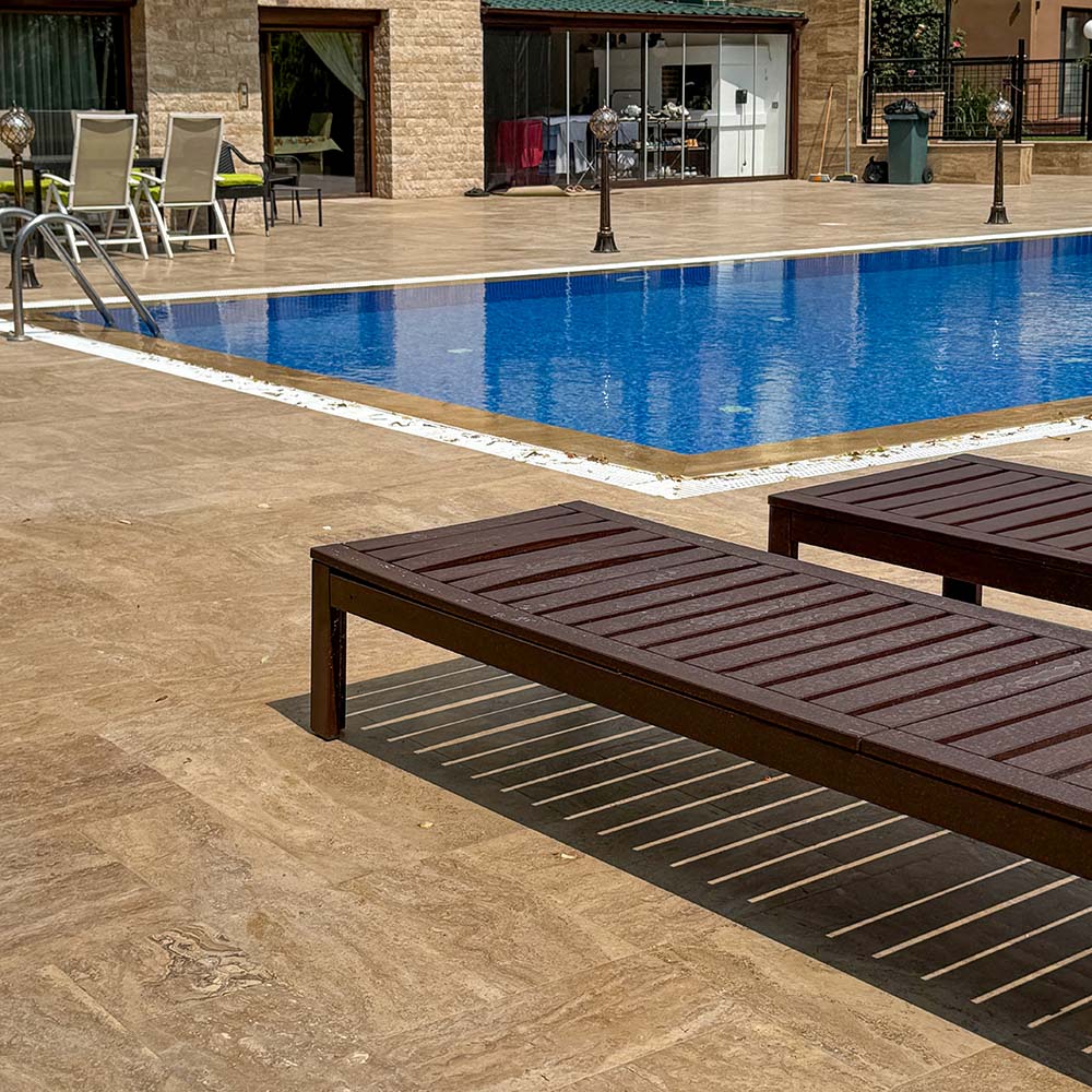 Rezistența la cristalizarea sărurilor (-0,086% variație masă) și la acțiunea SO₂ în mediu umed (-0,079%) plasează Latte perfect pentru aplicații în spații urbane cu poluare ridicată, în orașe cu iarnă reală sau în apropierea mării. Acolo unde alte travertine cu porozitate ridicată ar absorbi sărurile și ar începe să se degradeze prin eflorescențe sau exfoliere, Latte rămâne intact — pentru că pur și simplu nu lasă apa să pătrundă în profunzime.