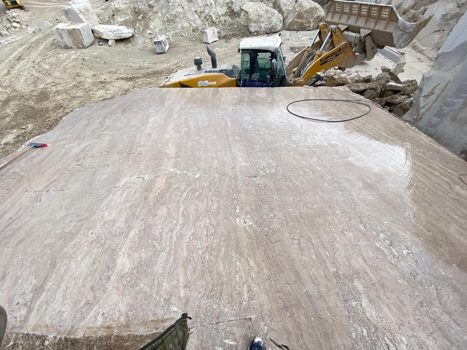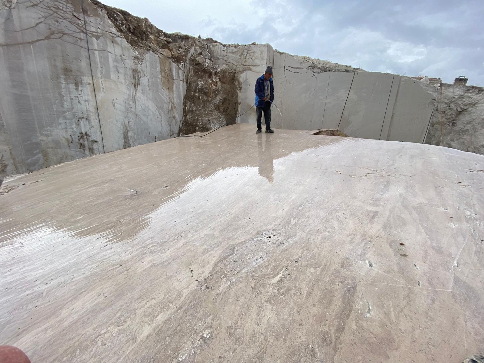 Privești o lastră de Latte și ai impresia că apa a înghețat în piatră. Liniile nu sunt tăiate, nu sunt imprimate — ele există. Sunt straturile sedimentare originale, depuse milion după milion de ani în bazine de apă termală bogată în carbonat de calciu. Când piatra se taie perpendicular pe aceste straturi — tehnica numită wave cut sau cross cut — acele linii devin vizibile în toată complexitatea lor: unde de culoare caldă, curgeri de tonuri crem spre bej, variații subtile de textură care conferă fiecărei lastre un caracter unic, irepetabil.