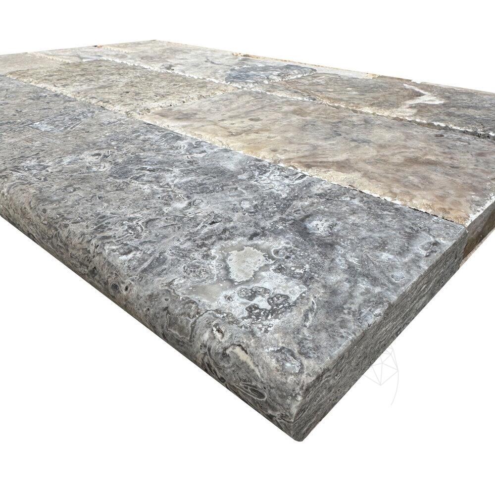 Bordura Travertin Silver Standard Antichizat Cross Cut, 3 x 15 x 61 cm