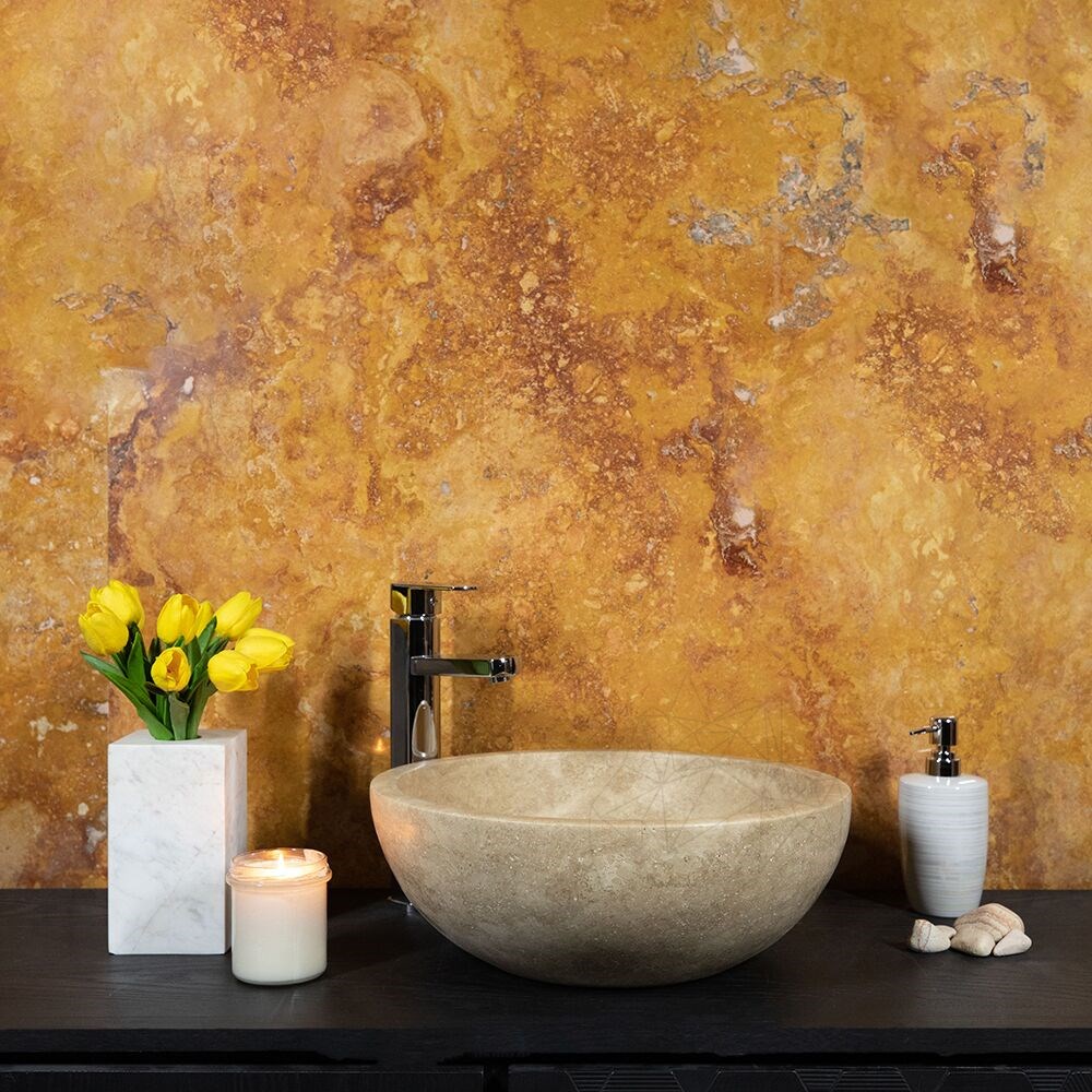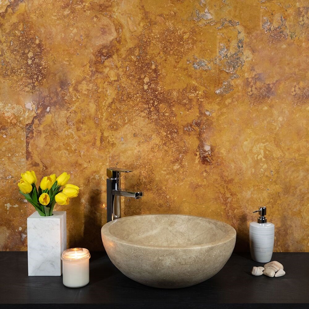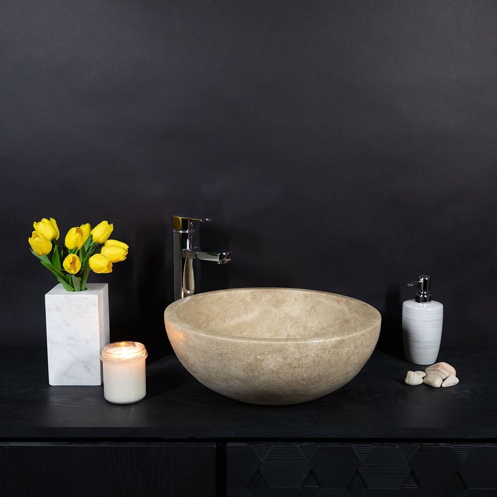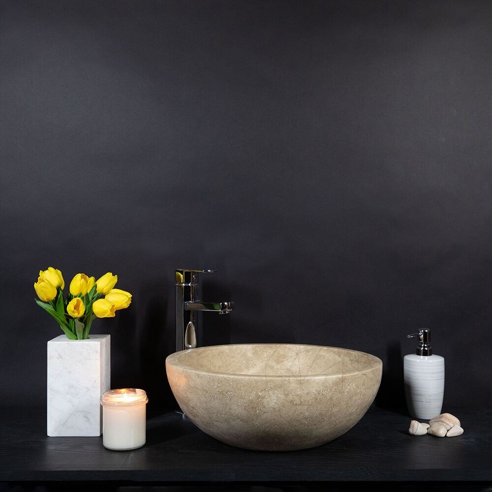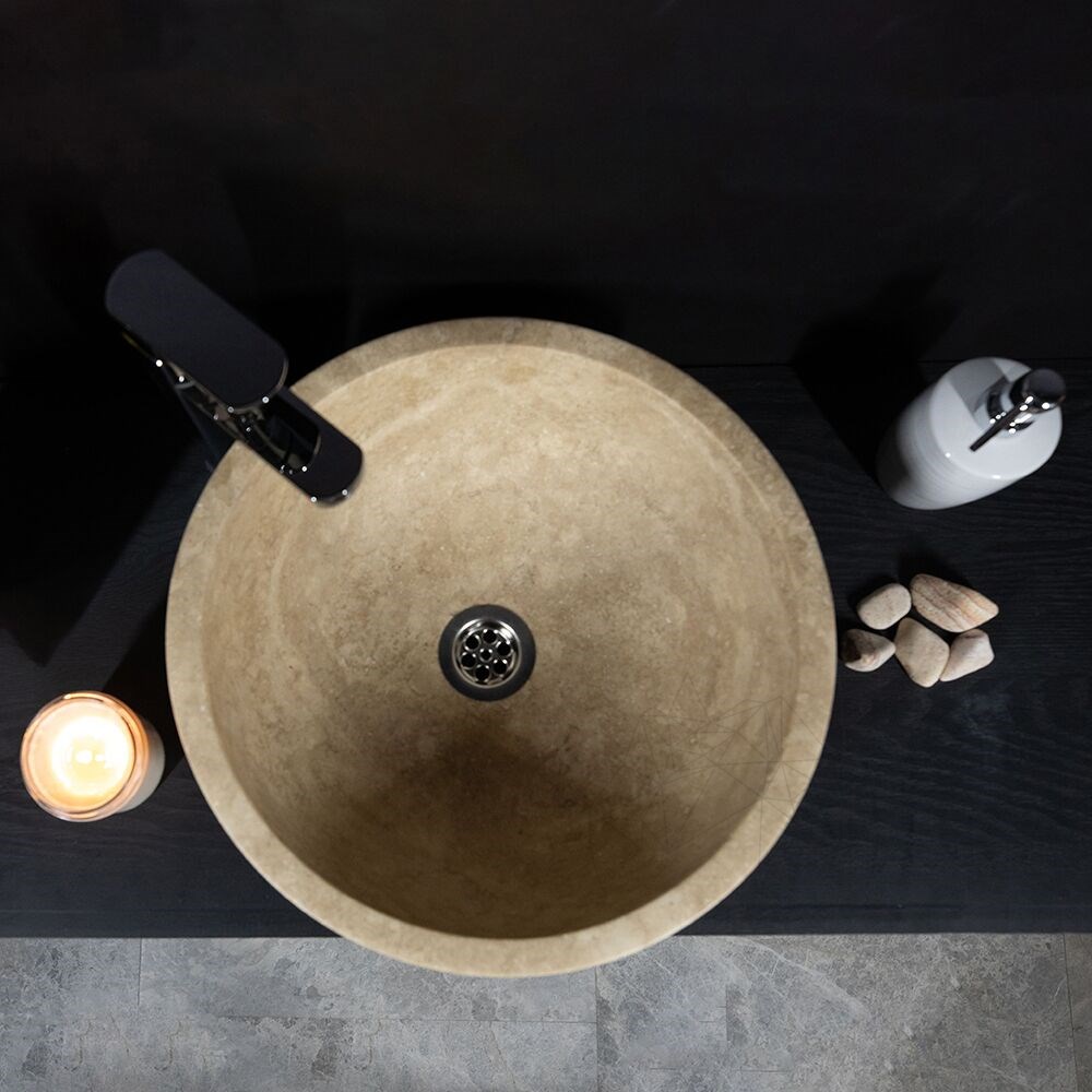 Blatul din Piatra Naturala este cea mai buna alegere pentru suportul Lavoarului din Travertin. Blatul din Piatra Naturala are rezistenta si durabilitate si poate sustine Lavoarul din Travertin pe suprafata sa. Inainte de montaj se caroteaza blatul pentru trecerea sifonului