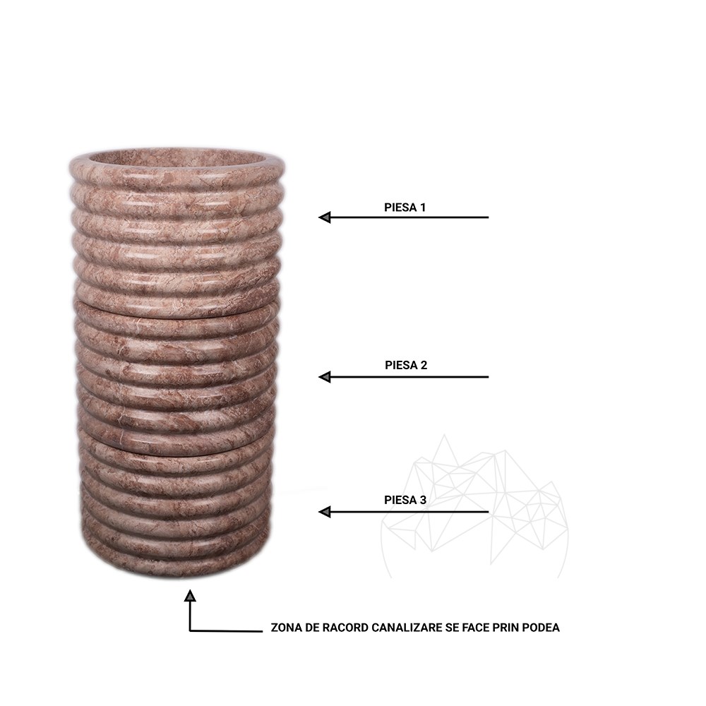 Chiuveta Tao din travertin Red inspira rezistenta si soliditate, insa si o delicatete subtila datorata suprafetei lucioase. Desi nu e sesizabil de prima data, aceasta chiuveta din travertin rosu este facuta dintr-o singura bucata, in ciuda striatiilor circulare si mari, care par cercuri suprapuse. Inalta, chiuveta poate reprezenta punctul de focalizare al intregii incaperi, indiferent de genul amenajarii: rustic, clasic, elegant, mediteraneean etc.