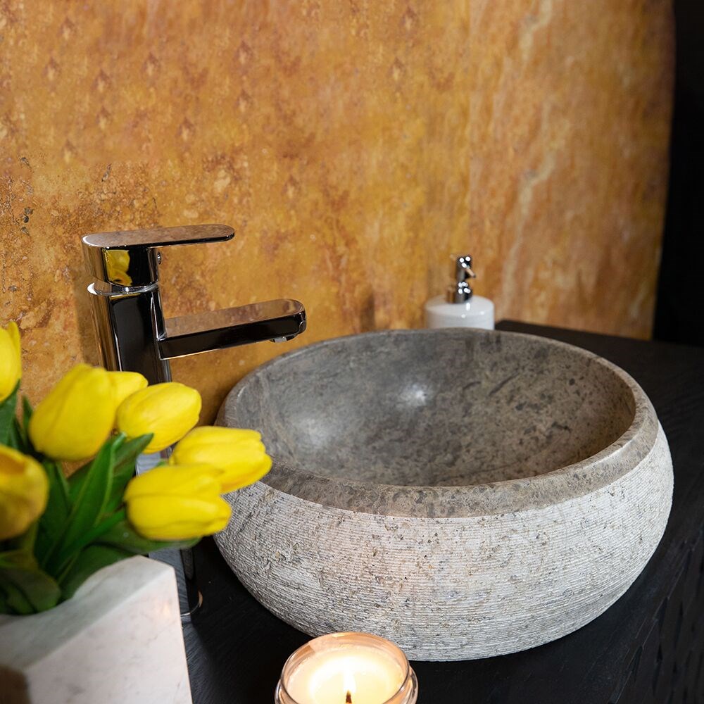 Cei mai multi dintre noi avem bai normale, care nu au nimic particular. In aceste conditii, o chiuveta de baie din piatra naturala schimba intreaga perspectiva a incaperii. De exemplu, chiuveta din travertin Silver, model RS-24. Acest produs se monteaza usor pe un blat de lemn sau de piatra naturala si se intretine la fel de usor cu ajutorul produselor speciale (recomandam marca LTP).