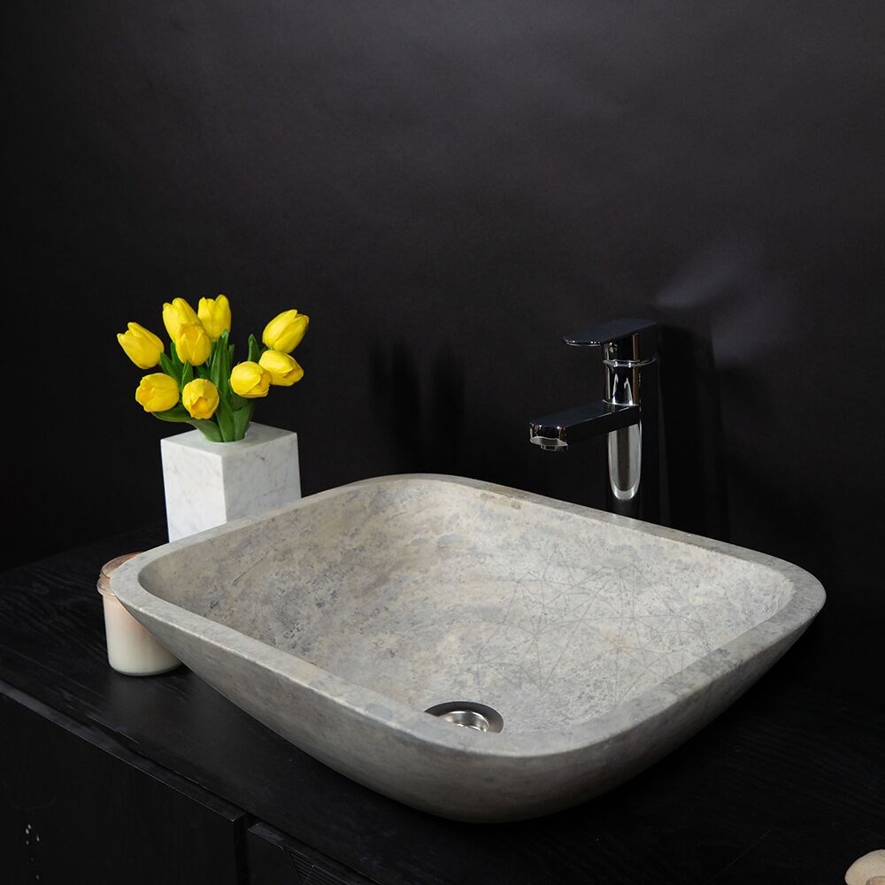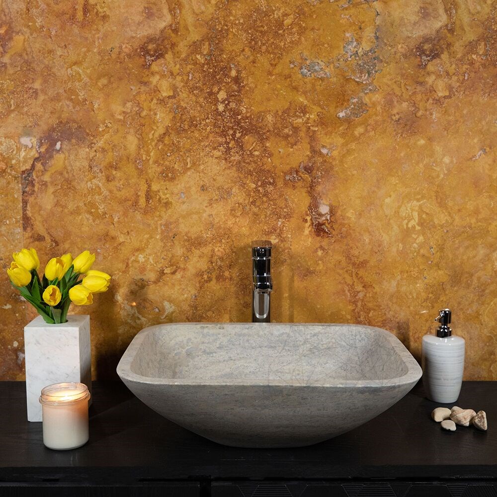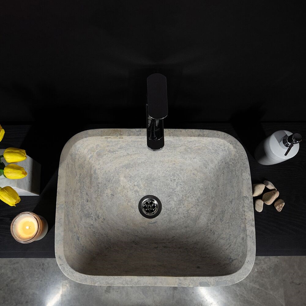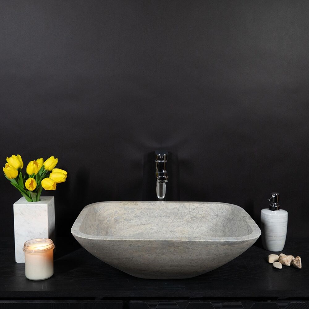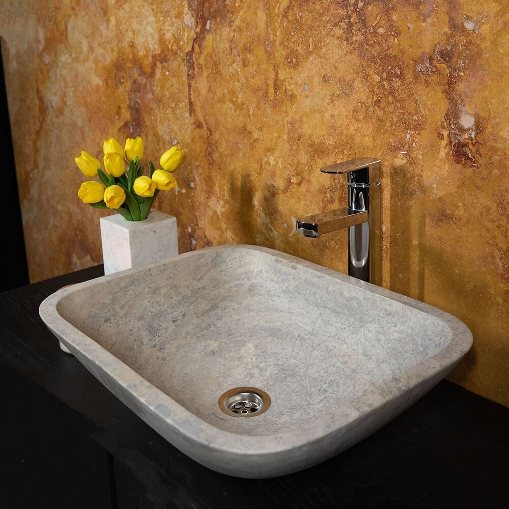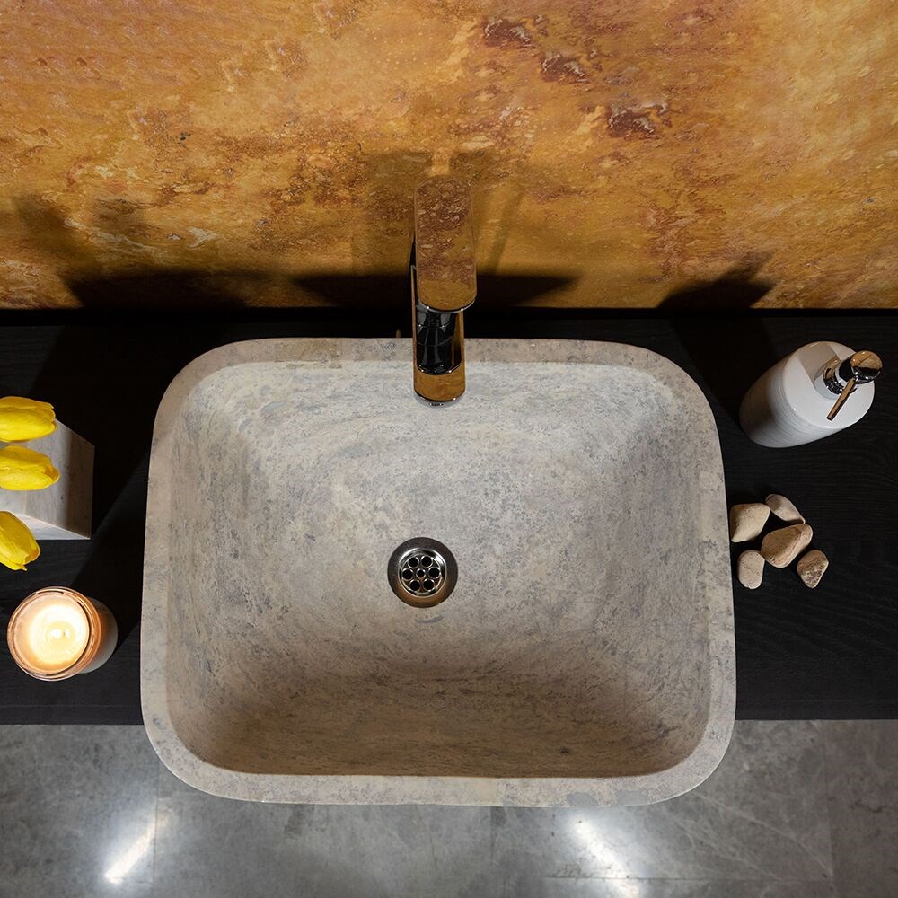 Chiuveta de baie Matia din travertin Silver are un aer aparte care, asociata cu un blat din aceeasi piatra sau chiar pe unul din lemn natur, transforma incaperea intr-una deosebita, intima si moderna simultan. Foloseste-o cu curaj in baia locuintei tale, sau chiar in cele publice.