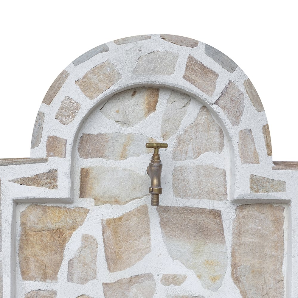 Cismeaua este executata din beton si se compune din doua parti: corpul propriu-zis si cuva de scurgere. Aceste elemente sunt decorate prin placare cu ardezie Rhodos, in forma de piatra poligonala.