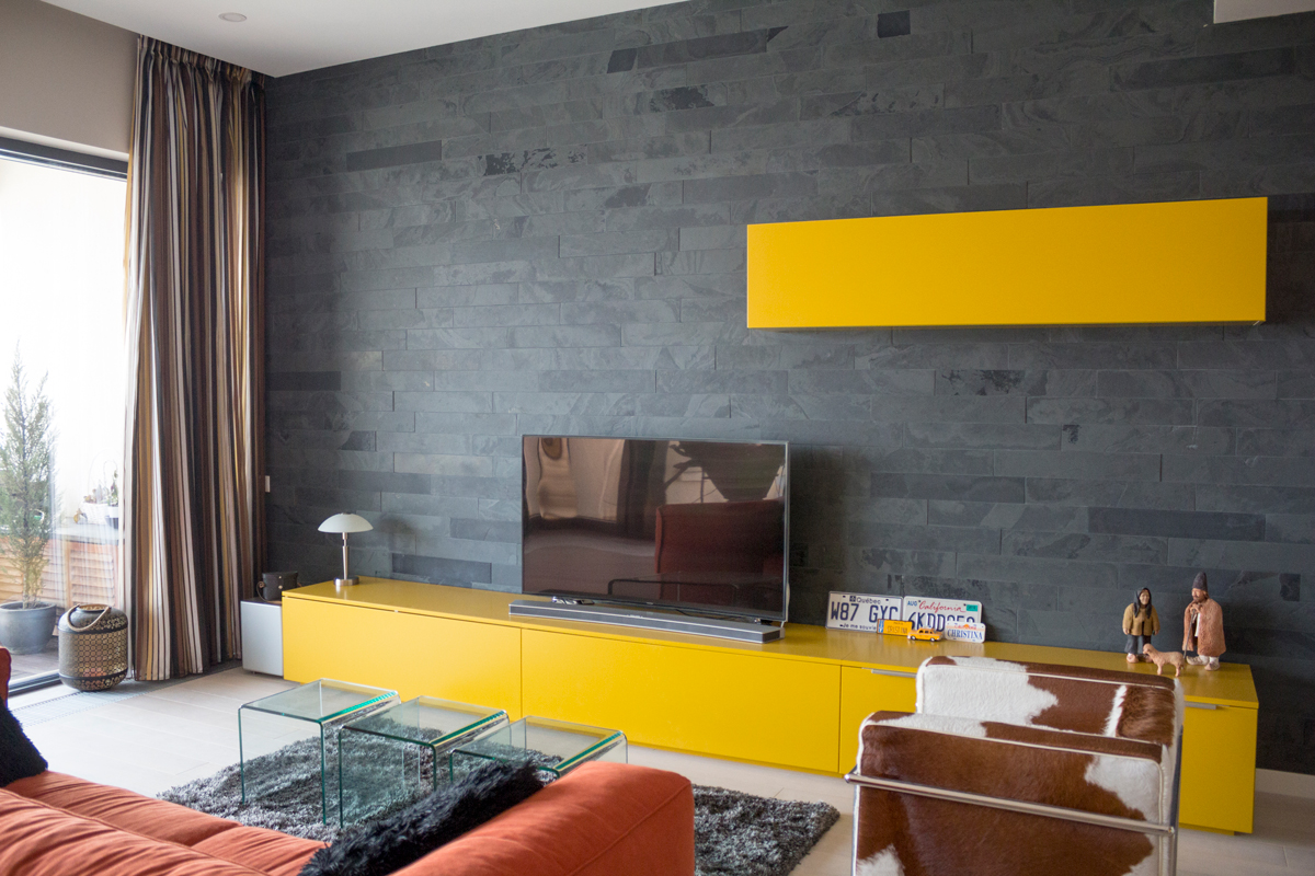 Ardezie (slate) – Rocă metamorfică derivată din argilă și nisip, consolidată sub presiunea scoarței terestre. Ardezia are stratificații fine și o suprafață naturală ușor aspră. Culoarea tipică este gri închis sau negru, dar poate varia și spre verde, albastru, ruginiu sau purpuriu, în funcție de compoziția minerală. Este cunoscută pentru durabilitatea și impermeabilitatea sa ridicate – nu absoarbe aproape deloc apa și rezistă excelent la îngheț și intemperii. De aceea, ardezia a fost folosită de secole ca învelitoare pentru acoperișuri (țiglă de ardezie, extrem de longevivă) și ca material pentru pardoseli sau placări exterioare. Textura și aspectul său conferă spațiilor un aer rustic, dar elegant. Există și variante moderne de ardezie flexibilă SKIN (foi foarte subțiri de ardezie pe suport flexibil), ideale pentru a îmbrăca suprafețe curbate sau pentru proiecte inovatoare de design.