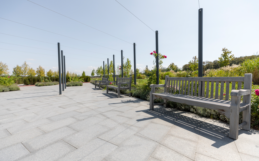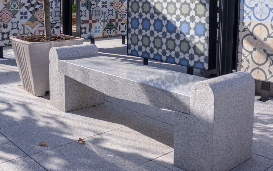 Bancile din granit Leopard White fac parte din amenajarea unui spatiu privat, dar pot fi un element impresionant de decor. Banca are o culoare neutra, foarte potrivita incadrarii intr-un spatiu plin de vegetatie. Se poate observa contrastul cromatic al bancii din granit Leopard White fata de iarba, flori, alei din pietris sau copaci.