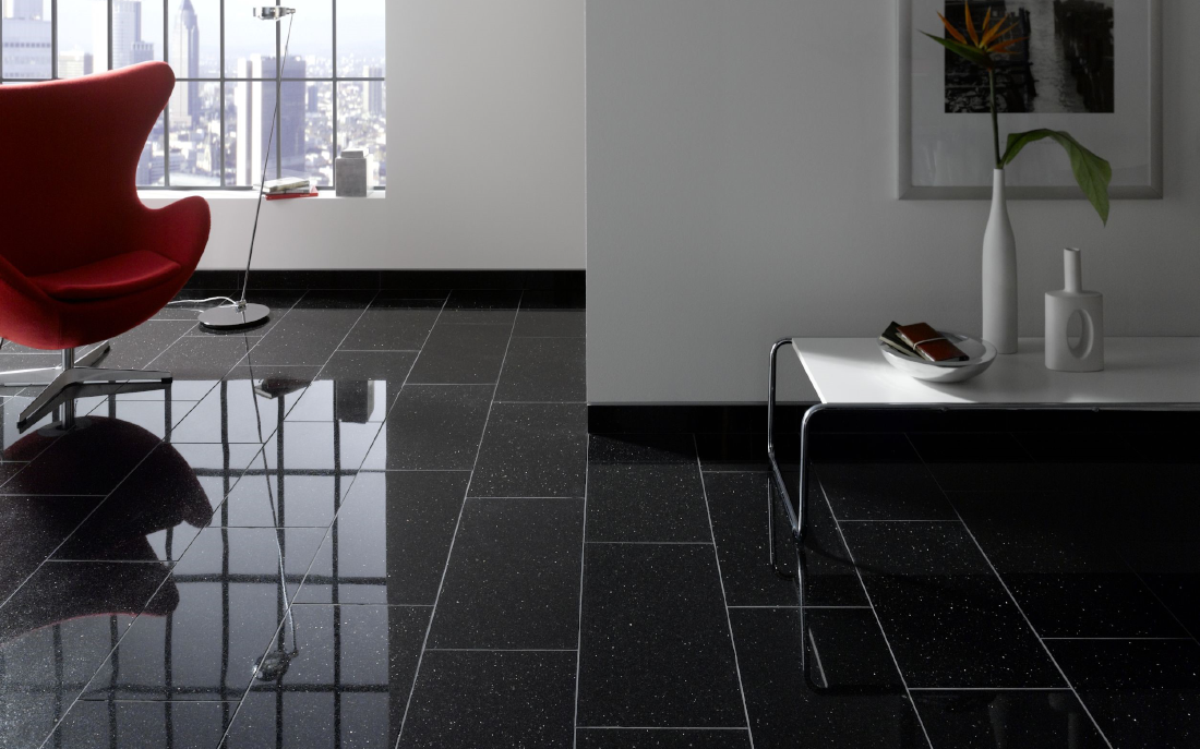Pardoseala din granit Black Galaxy Polisat, sursa foto: piatraonline.ro