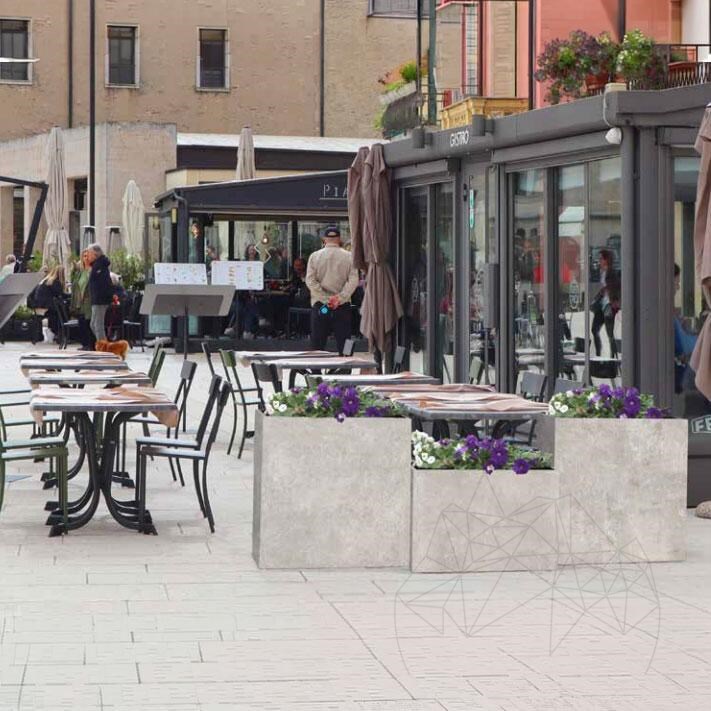 Jardinierele din piatră sinterizată sunt realizate din același material ca și plăcile de pavaj, pornind de la același format utilizat pentru pavimentare, conferind astfel linearitate, coerență vizuală și uniformitate întregului ansamblu. Dotată cu orificiu pentru scurgerea apei, jardiniera asigură o gestionare eficientă a umidității, protejând atât structura acesteia, cât și suprafața pe care este amplasată.