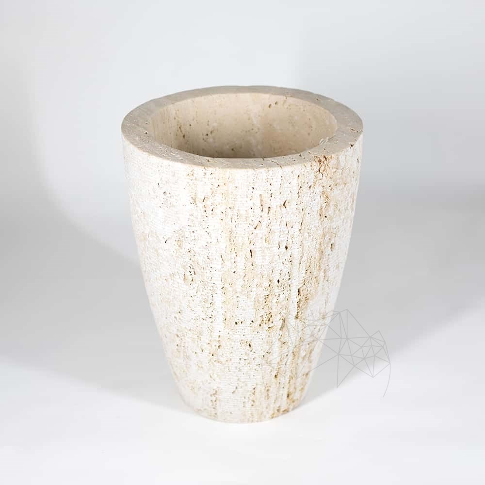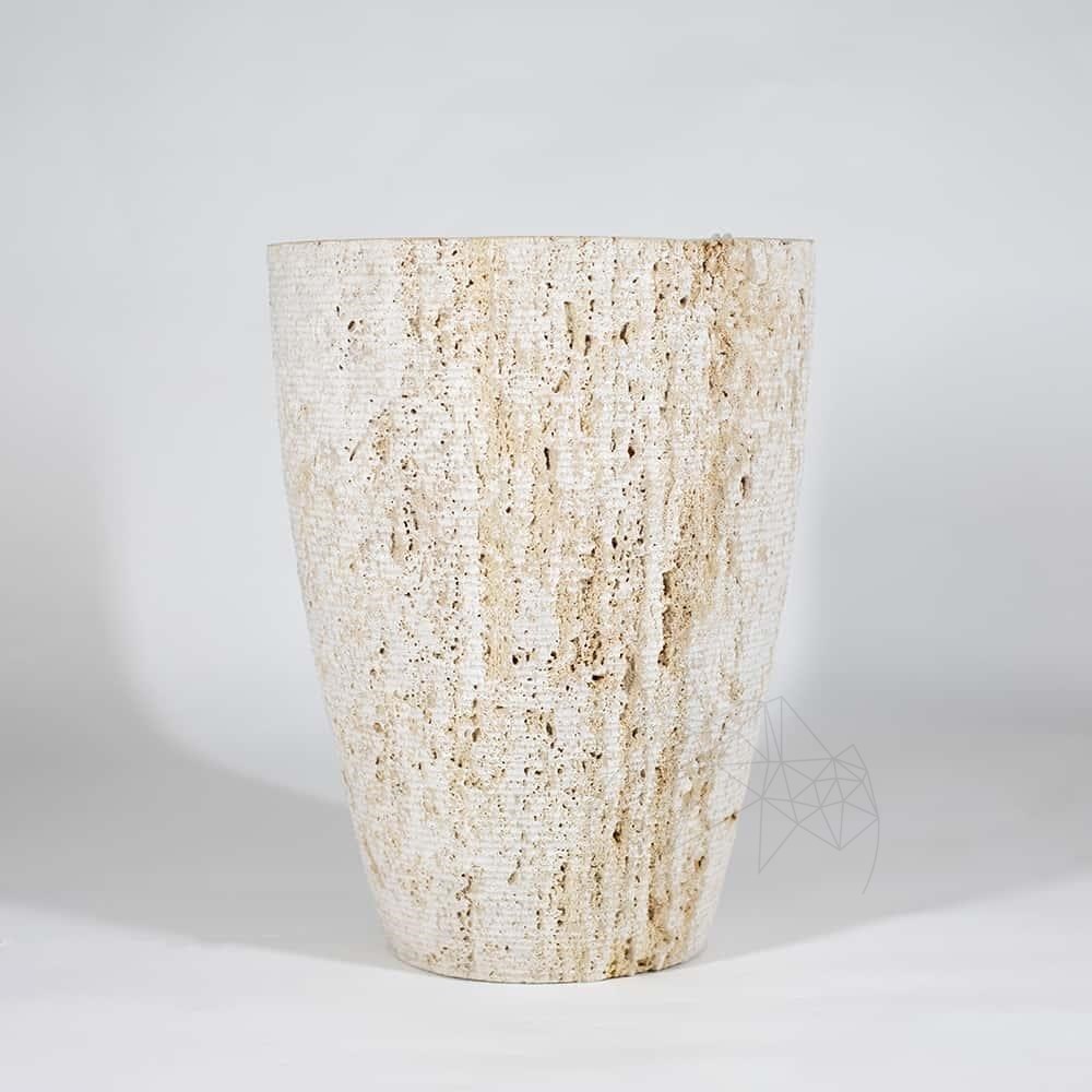 Jardiniera din travertin Classic, cu forma amintind de amforele antice si finisaj Rizat, apare ca un volum elegant si usor de asortat in gradina ta.  Nuantele de pamant si textura autentica accentueaza aspectul unic al travertinului si permit asocierea produsului in amenajari speciale. Un trunchi de con gratios, purtator al unor plante adunate intr-o asociere fireasca, se evidentiaza in gradina ta, ca un accent firesc al perenitatii.