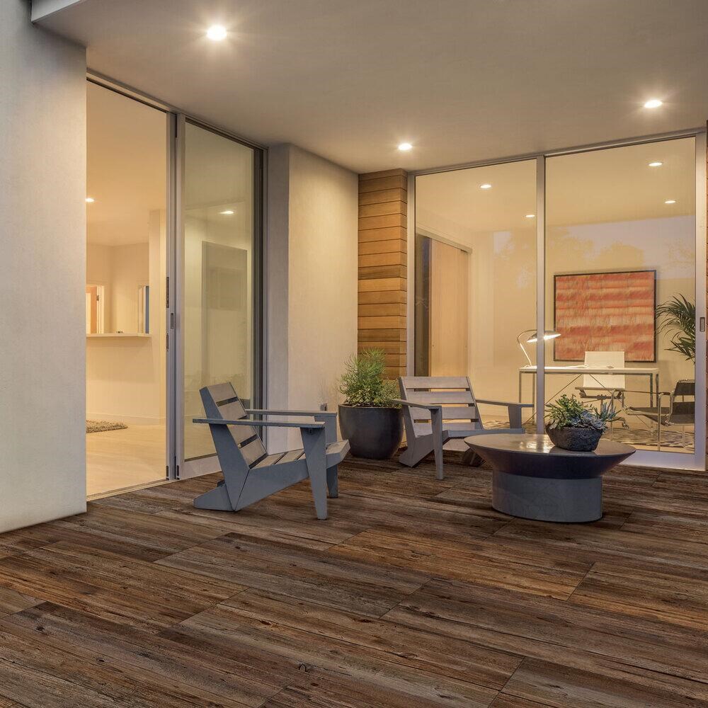 OUTDOOR WOOD 2 CM BOSCO Tabula Scura sinterizate de înaltă grosime. Cu o textură fină, inspirată de lemnul prețios, această placă este perfectă pentru amenajări interioare și exterioare moderne, unde eleganța minimalistă întâlnește durabilitatea.