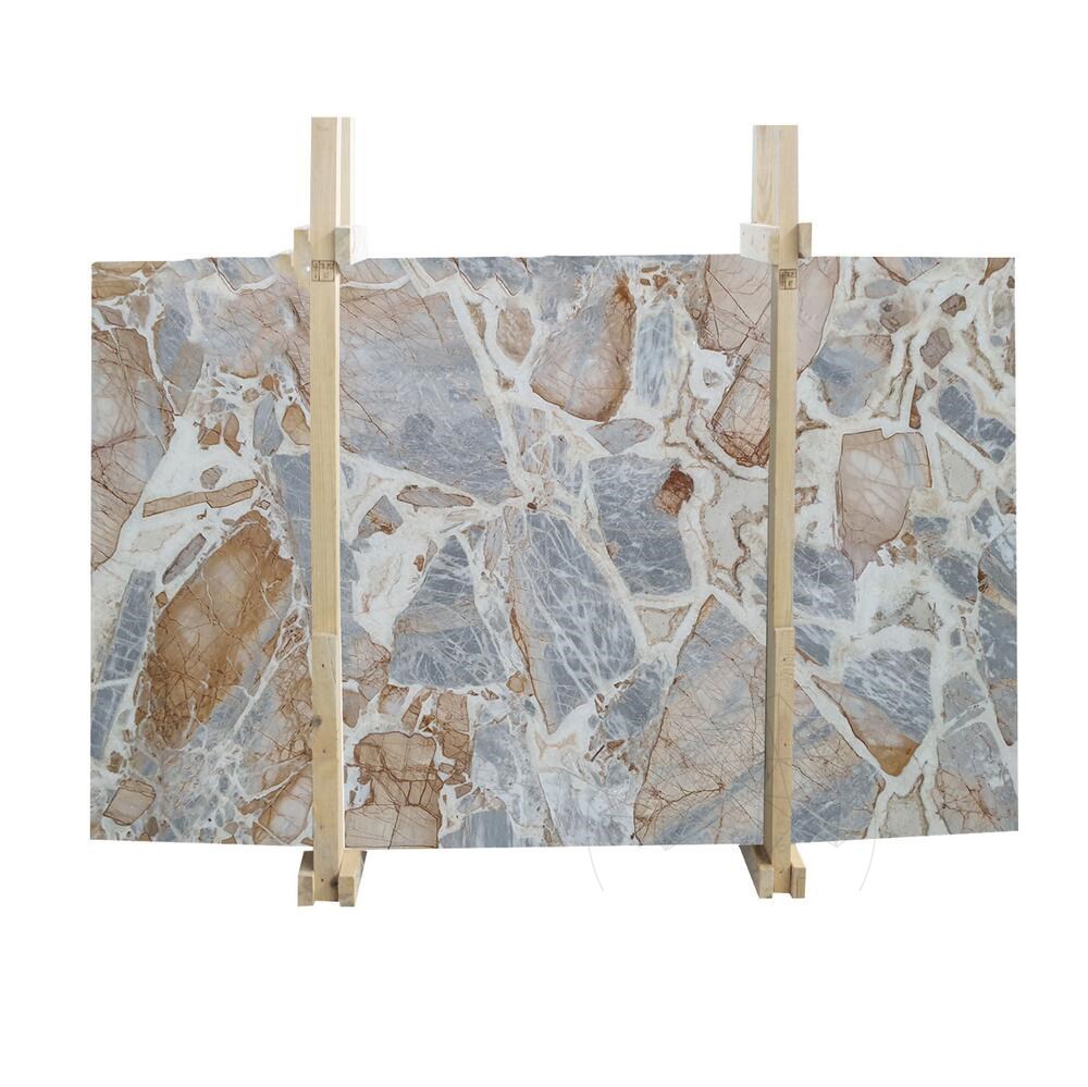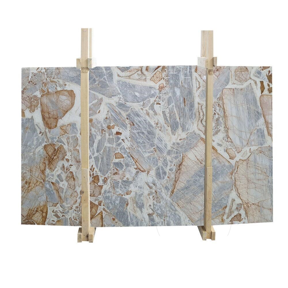 Lastra de Marmură Patagonia Blue este una dintre cele mai spectaculoase pietre naturale, apreciată pentru compoziția sa unică de tonuri albastre, gri și aurii, îmbinate într-un joc de forme și contraste asemănător unei opere de artă. Este o marmură exotică, cu o estetică puternică și sofisticată, potrivită pentru proiecte de design interior exclusiviste.