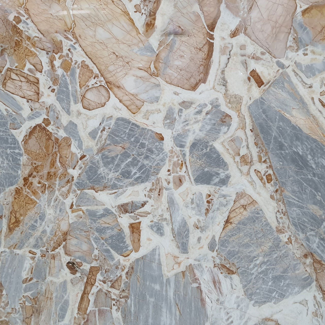 Cu o grosime de 2 cm, marmura Patagonia Blue îmbină durabilitatea cu rafinamentul vizual. Finisajul polișat (lucios) scoate în evidență detaliile complexe ale texturii, creând un efect de profunzime și lumină care transformă fiecare placă într-o piesă de artă naturală.