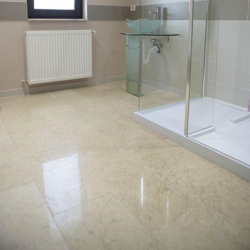 Băi: Textura și nuanțele calde fac limestone-ul perfect pentru crearea unui spațiu relaxant și elegant în baie.