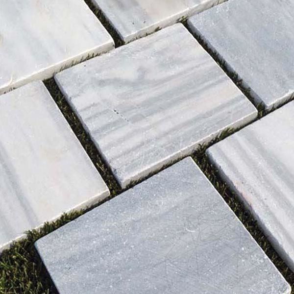 Marmura Kavala este una dintre vedetele amenajarilor exterioare, dand dovada de versatilitate, datorata culorii albe si texturii cu personalitate. In cazul acestui tip de piatra naturala este de remarcat grosimea de 4.5 cm, ceea ce pentru o placa de marmura inseamna o super rezistenta. Asadar, ea poate fi utilizata in cadrul amenajarilor exterioare, in locuri cu trafic intens: pavaje, alei, chenare in jurul cladirilor, locuri de parcare, terase, piscine etc. Pentru a-i scoate in evidenta culoarea calda – amplificata de finisajul antichizat, marmura Kavala Cross Cut este deseori utilizata ca ”pasi japonezi”, confera locului respectiv mai multa spatialitate si un plus de expresivitate.