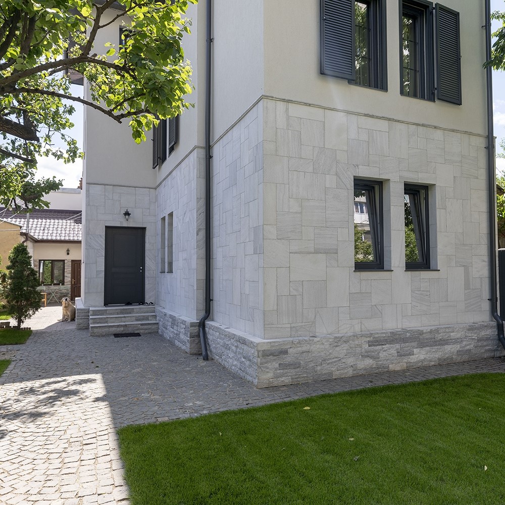 Versatilitate ridicată: utilizat pentru pavaje, placări fațade, blaturi, glafuri, trepte; ideal pentru proiecte rezidențiale și comerciale unde estetica și funcția merg mână în mână.
