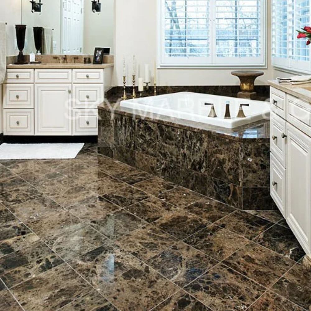 NOU! Marmura Maron Emperador PREMIUM este definita prin venatura sa bogata in tonalitati deschise de alb, bej si auriu, completata de stralucirea obtinuta prin finisajul polisat, adauga eleganta si rafinament oricarui interior. Marmura Maron Emperador cu finisaj polisat isi gaseste frecvent utilitatea in decorarea semineelor, mobilei, mastilor pentru cazi si chiuvetelor, blaturilor de bucatarie si multe altele. In plus, este folosita in placarea podelelor, in acoperirea peretilor si, mai rar, in sculptura. Se potriveste foarte bine in stilurile clasic, dark, elegant, glamour sau rococo.