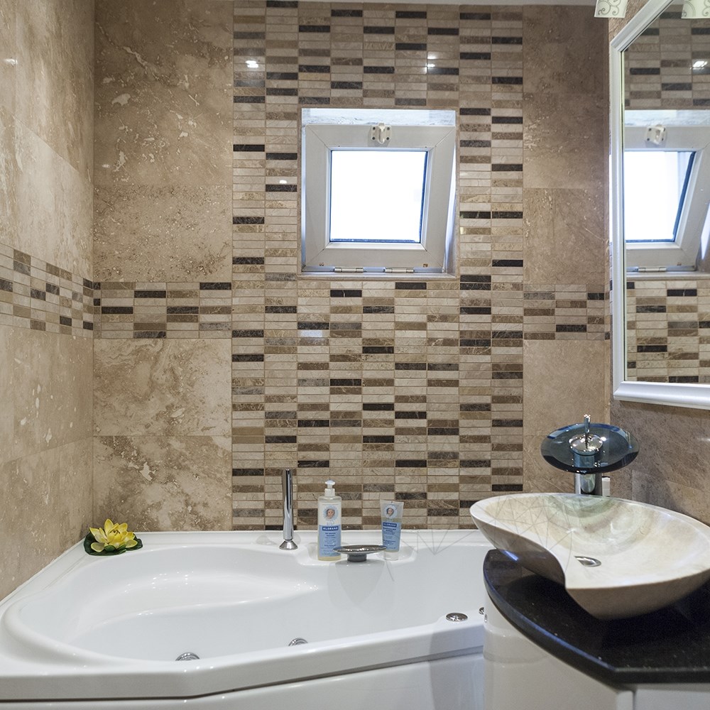 Pentru placari orizontale in functie de trafic recomandat sa montati un mozaic de marmura, de ce va recomandam de marmura, pentru ca se intretine mai usor in cazul zonelor cu trafic, daca montati acasa la dvs, va spuneam de travertin, mozaicurile din travertin aduc ‘caldura’, etc.
