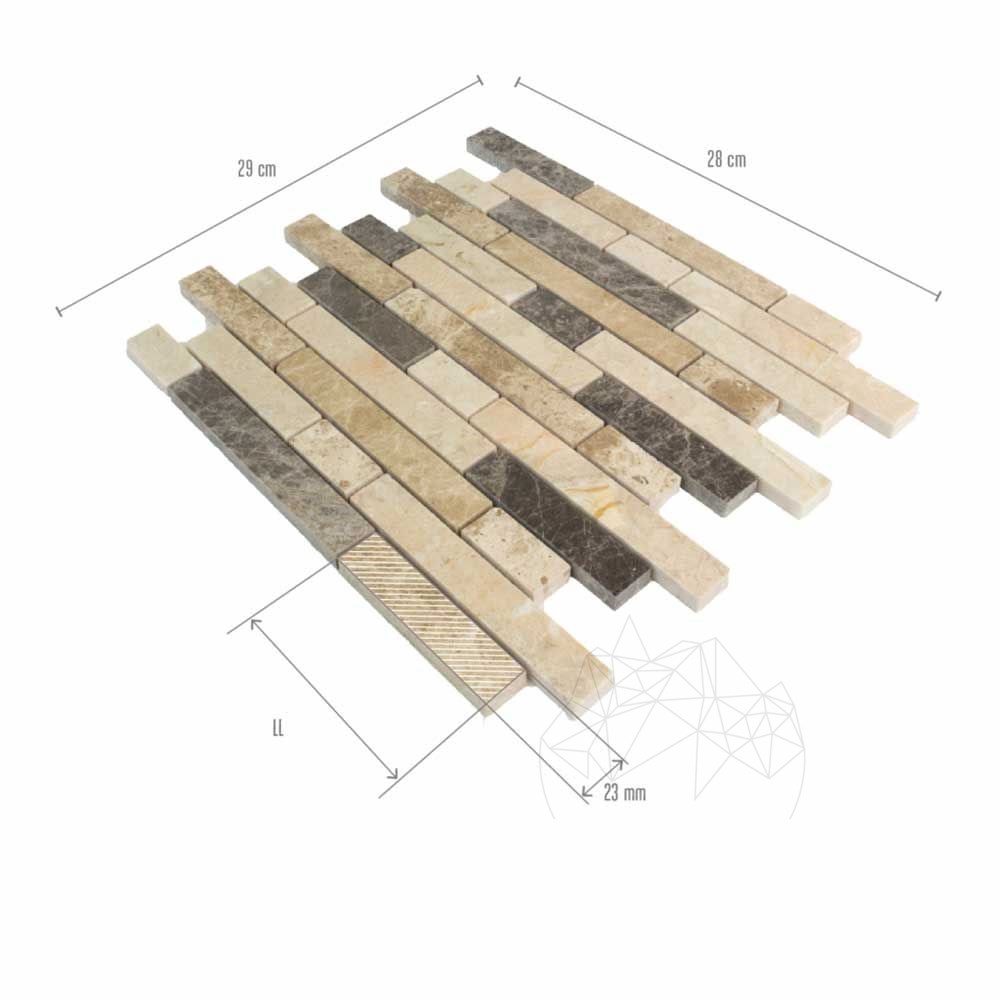 Amenajarile interioare isi au dintotdeauna un ”partener” de incredere in mozaicuri. Subtilitatea si posibilitatea uriasa a lor de asociere reprezinta doua dintre cele mai mari calitati ale lor. Este si cazul mozaicului din marmura Mix Marble, polisata. Indiferent unde s-ar monta, vertical (pereti, contrablaturi, chenare, seminee etc.) sau orizontal (pardoseli, placari de mobilier), acest mozaic din piatra naturala se impune prin gama complementara a culorilor. Datorita aspectului sau relaxant, se poate regasi in baie, bucatarii, livinguri, holuri etc. In cadrul amenajarilor exterioare, se preteaza la placarea fatadelor si a gardurilor. Mozaicul din marmura Mix Marble polisata este un produs nu doar versatil, ci si foarte maleabil (vine montat pe plase 30.5 x 30.5 cm), usor de adaptat fiecarei nevoi in parte din zona amenajarilor ambientale.